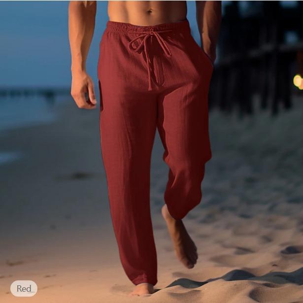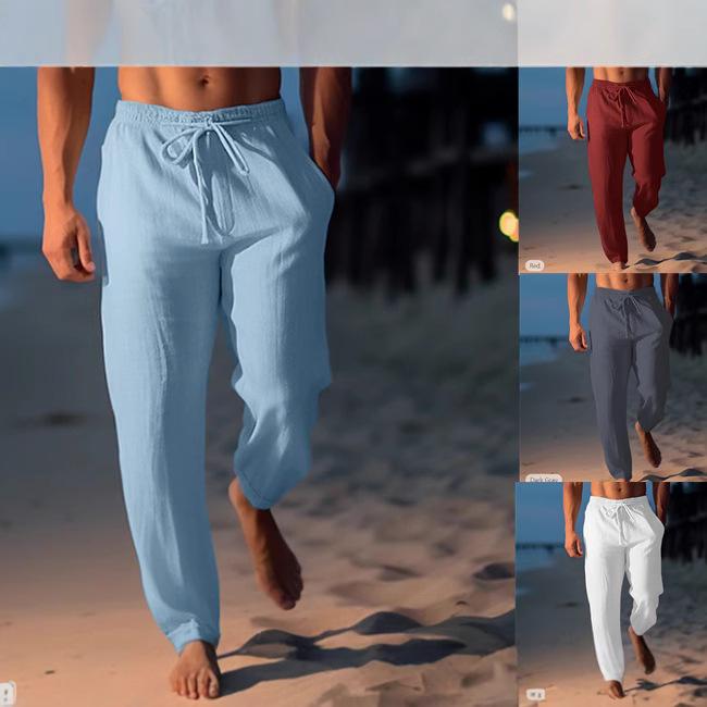 Мужские льняные брюки летние штаны пляжные штаны на кулиске эластичная талия прямые плоские удобные дышащие повседневные