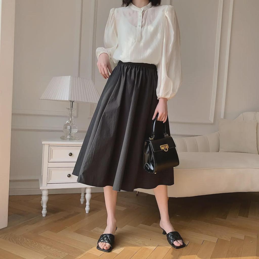Новое поступление: Женская юбка А-силуэта с высокой талией из выстиранного хлопка - Свободная, повседневная, универсальная, в японском стиле, для весны и лета