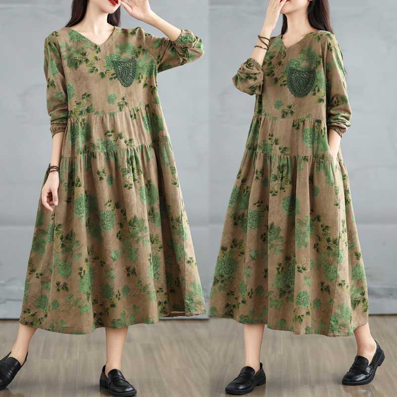Осеннее маленькое платье с V-образным вырезом, кружевным карманом и длинными рукавами, платье А-силуэта