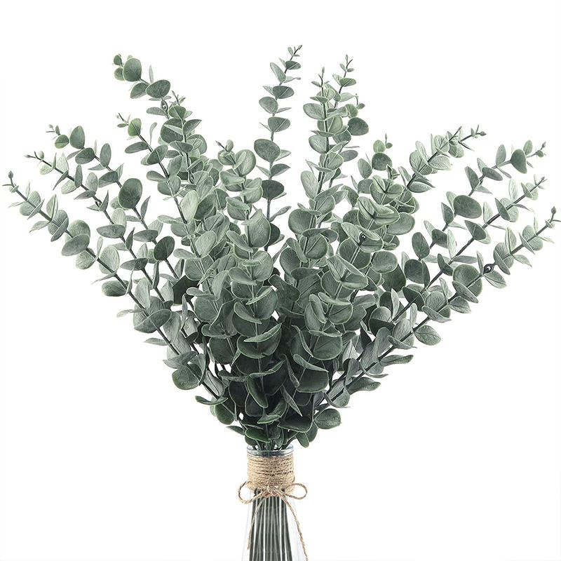 20 шт. искусственных стеблей эвкалипта, листьев, зеленых веток эвкалипта, искусственных растений для свадебных центральных украшений, рождественского декора Navidad
