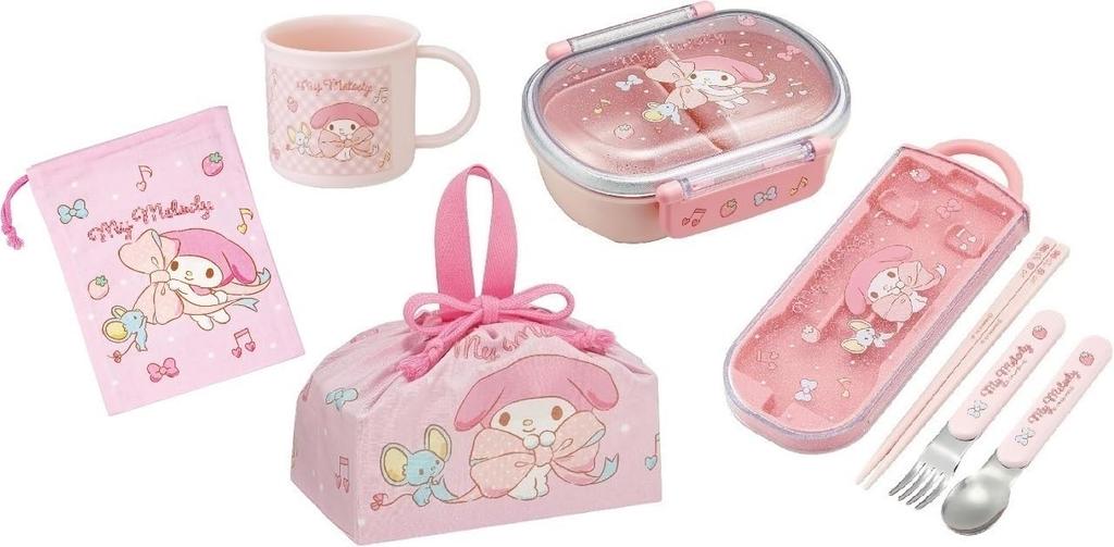 ■Детский ланч-бокс Skater Набор Трио Палочки Ложка Вилка Детские столовые приборы Антибактериальная обработка Легко открывающийся Раздвижной тип Сделано в Японии Sanrio My Melody Большой бант Для девочек TACC2AG