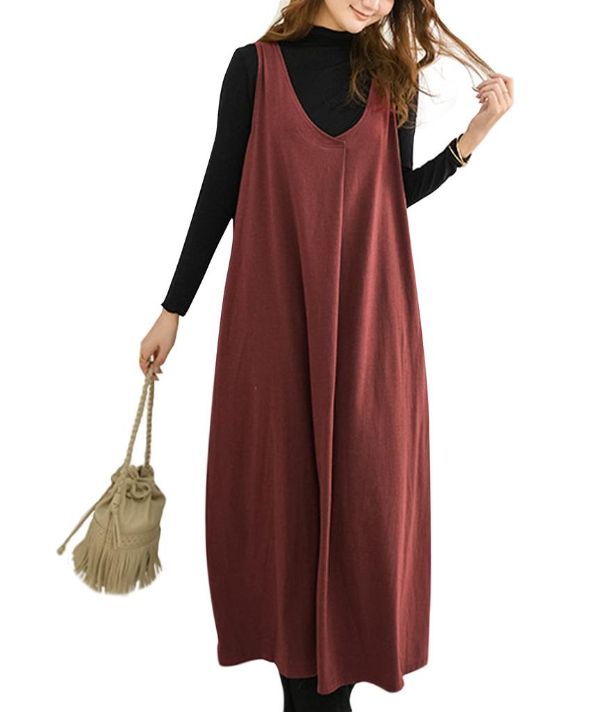 Представляем платье без рукавов глубокого цвета, которое будет эффектно смотреться осенью и зимой.. Легкая и свободная ткань создает женственный образ.. В дизайне используется только один слой ткани, сшитый спереди, что создает элегантную атмосферу, напоминающую драпировку, и в то же время естественным образом создает вертикальные линии, благодаря которым вы выглядите прекрасно.. Простой дизайн делает его идеальным как для повседневных, так и для женственных образов.. Гладкая и удобная ткань мягко расправляется при каждом движении, создавая мягкий женственный силуэт.. Еще одним замечательным моментом является то, что его можно носить круглый год, в зависимости от того, с каким верхом и брюками вы его сочетаете.. Его удобно носить, не ощущая стеснения, поэтому он идеально подходит для отдыха на отдыхе или в качестве домашней одежды.. Ношение его отдельно придаст вам изысканный вид, поэтому это длинная футболка, рекомендованная для тех, кто хочет носить стильные вещи непринужденно и расслабленно.