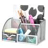 "Многофункциональный ящик для хранения канцелярских принадлежностей": Подставка для ручек с 9 ящиками позволяет аккуратно хранить мелкие предметы, такие как шариковые ручки, ластики, ножницы, пульты дистанционного управления, мобильные телефоны и визитные карточки, вокруг вашего стола.. Мало того, вы также можете аккуратно организовать мелкие предметы, такие как булавки, скрепки и USB-накопители.. Сборка не требуется. Идеально для организации мелких предметов на вашем столе.