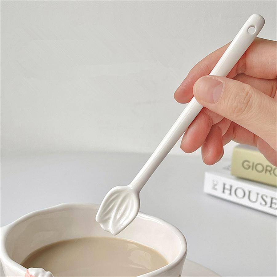 3/6 шт. керамическая ложка для перемешивания кофе, керамическая чисто белая креативная ложка с рельефом тюльпана, кофейные принадлежности, маленькая ложка