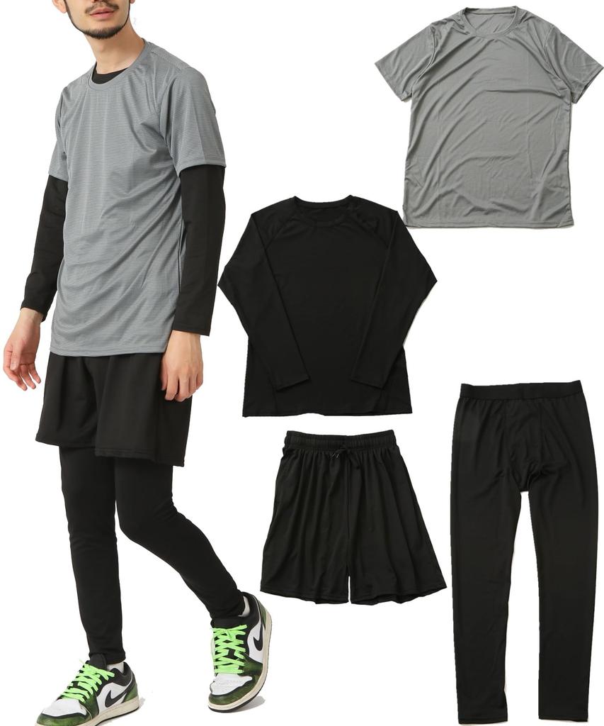 Компрессионная одежда для тренировок, тренировочный верх и низ, фитнес, серый [Arcade] комплект, мужская одежда, комплект из 4 предметов, спортивная одежда, одежда, комплект, одежда, весна, лето,