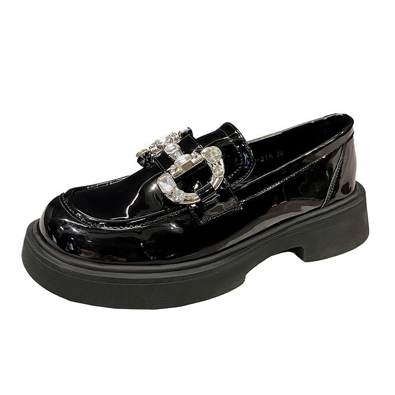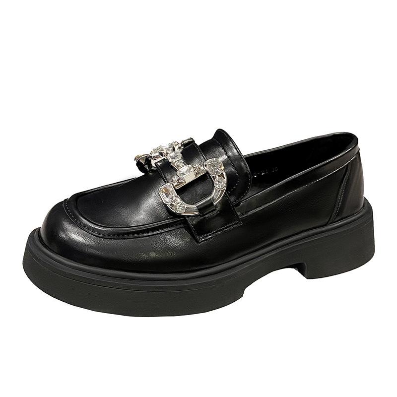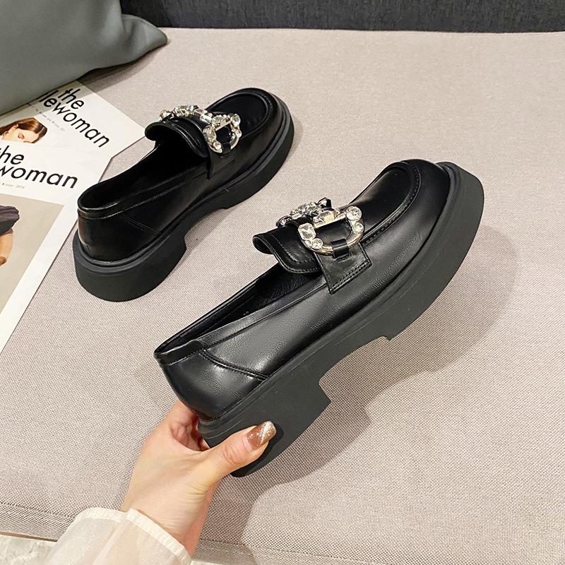 Женские лоферы на платформе 2025 весна новая толстый каблук черные одинарные туфли ретро увеличивающие рост маленькие кожаные туфли