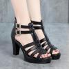 Женские летние 2025 года сандалии на высоком каблуке в римском стиле, с открытым носком, на платформе, кожаные