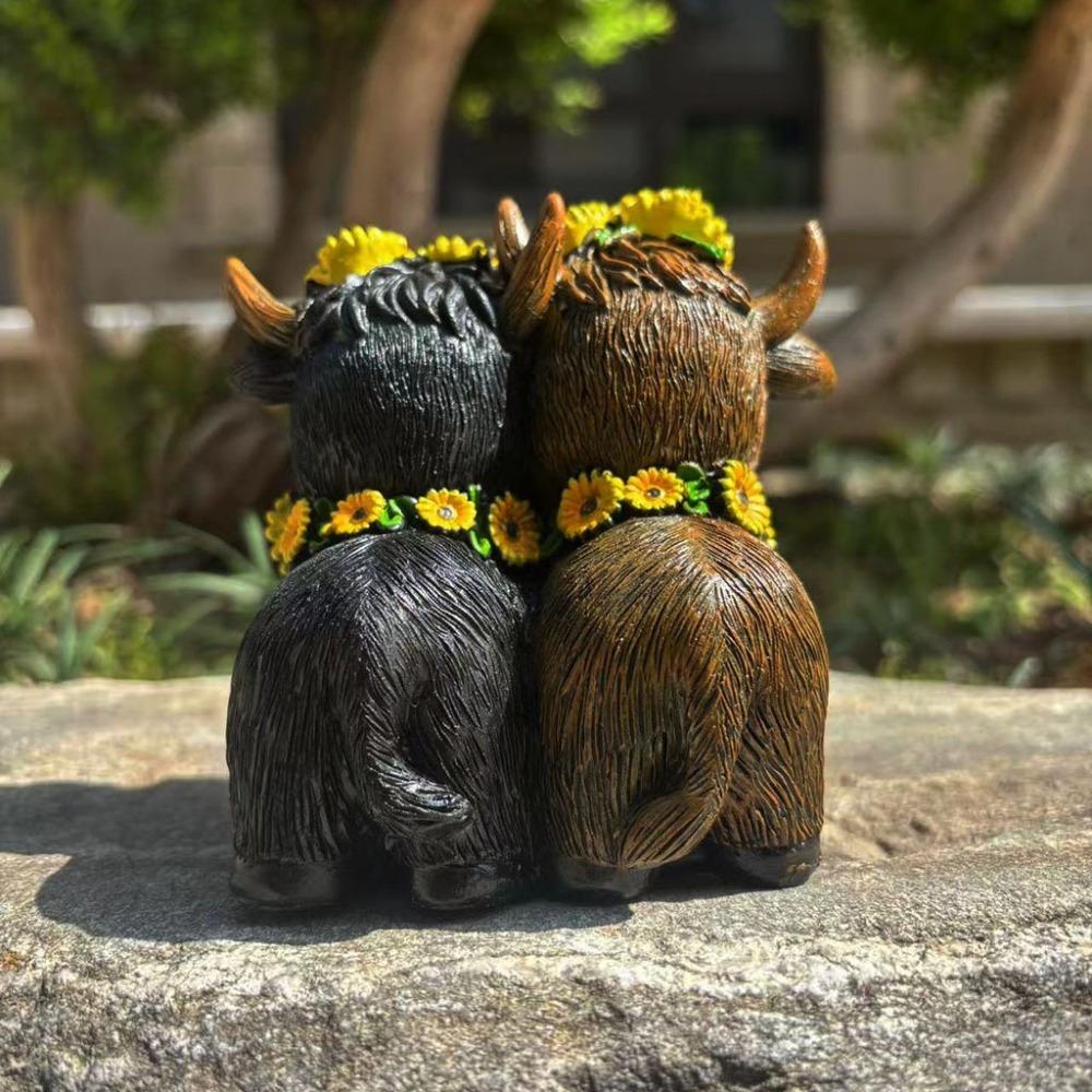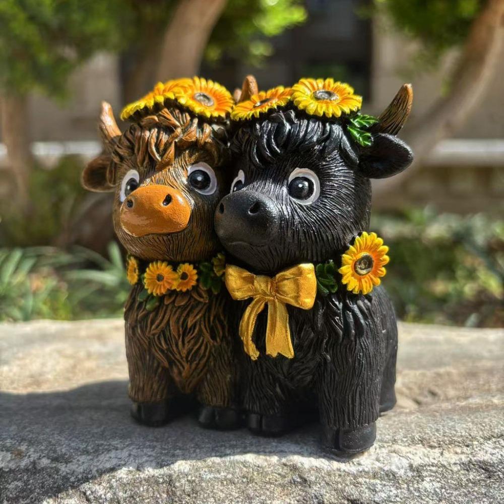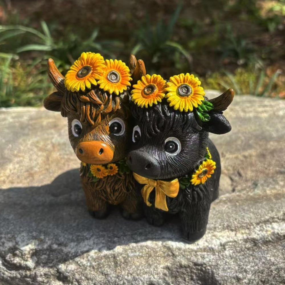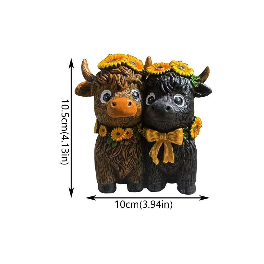 Spring Sunflower Highland Cow Figurines Funny Calf Lovers Gifts Table Decor
