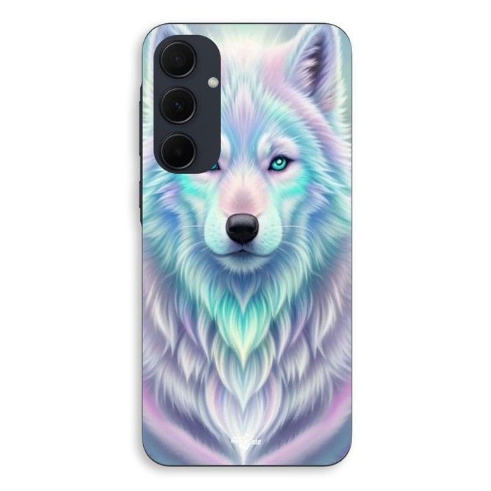 Coque Pour Samsung galaxy A35 Loup blanc reflet violet Maniacase