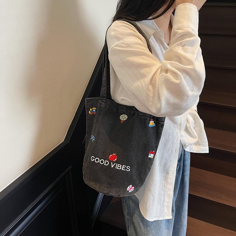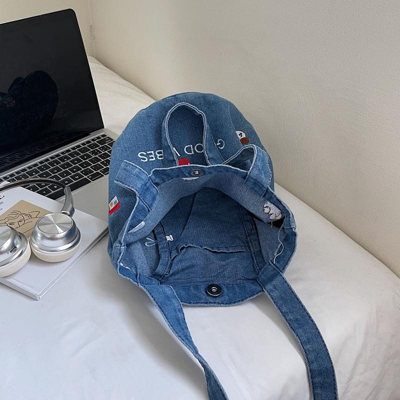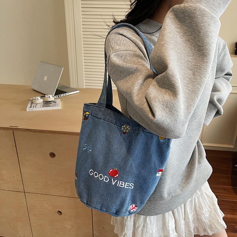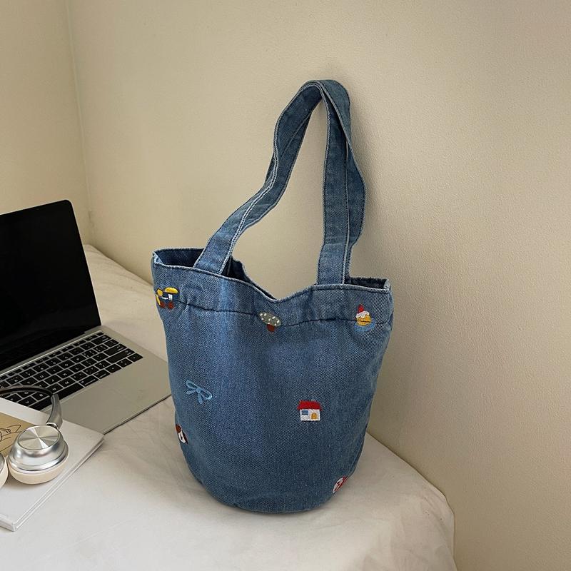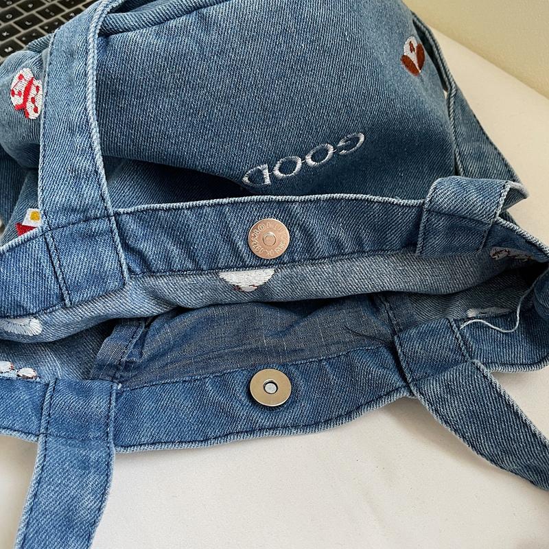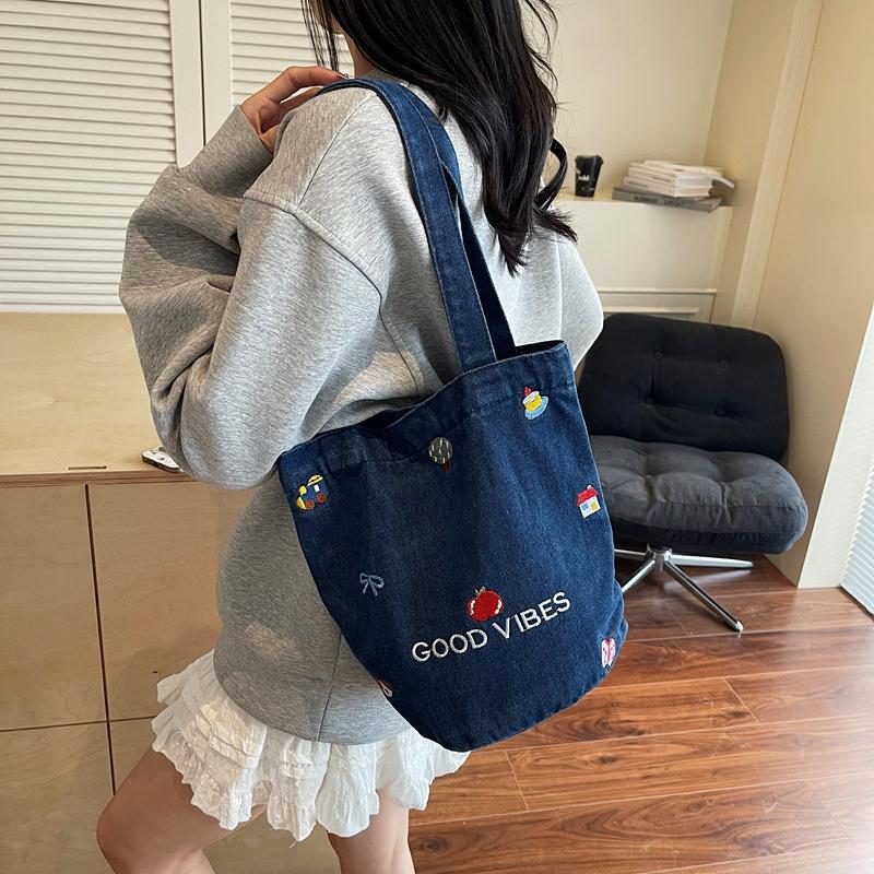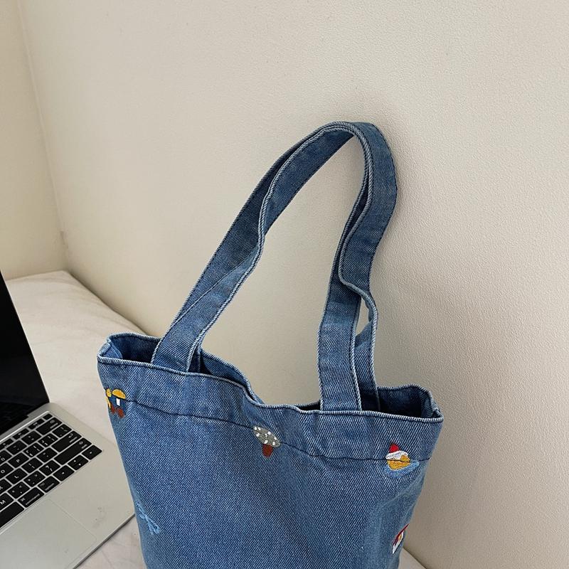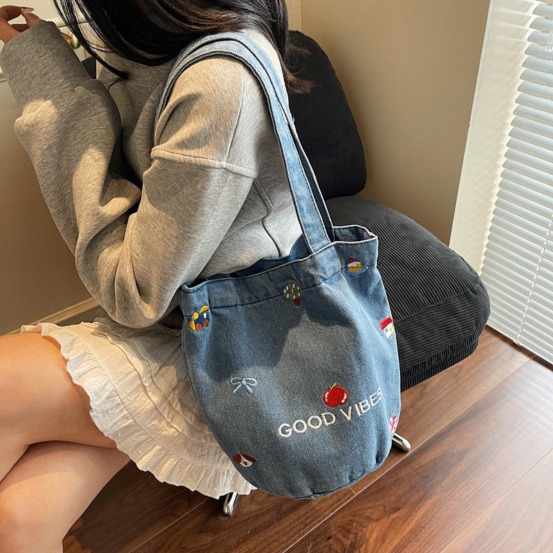 Джинсовая сумка большой вместимости женская вышитая сумка-тоут на плечо
