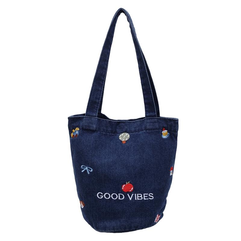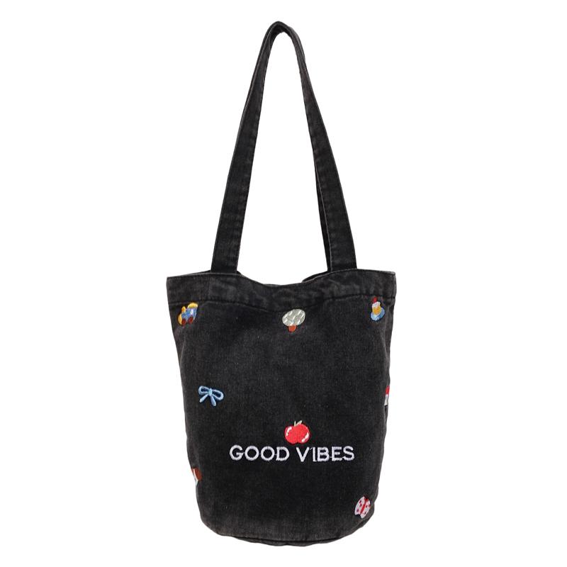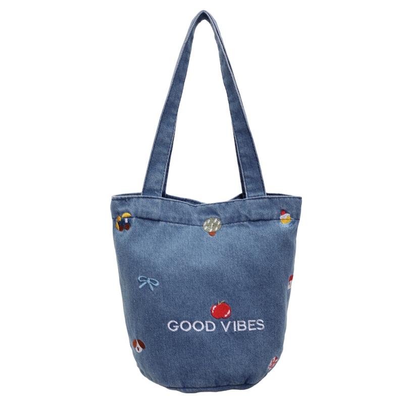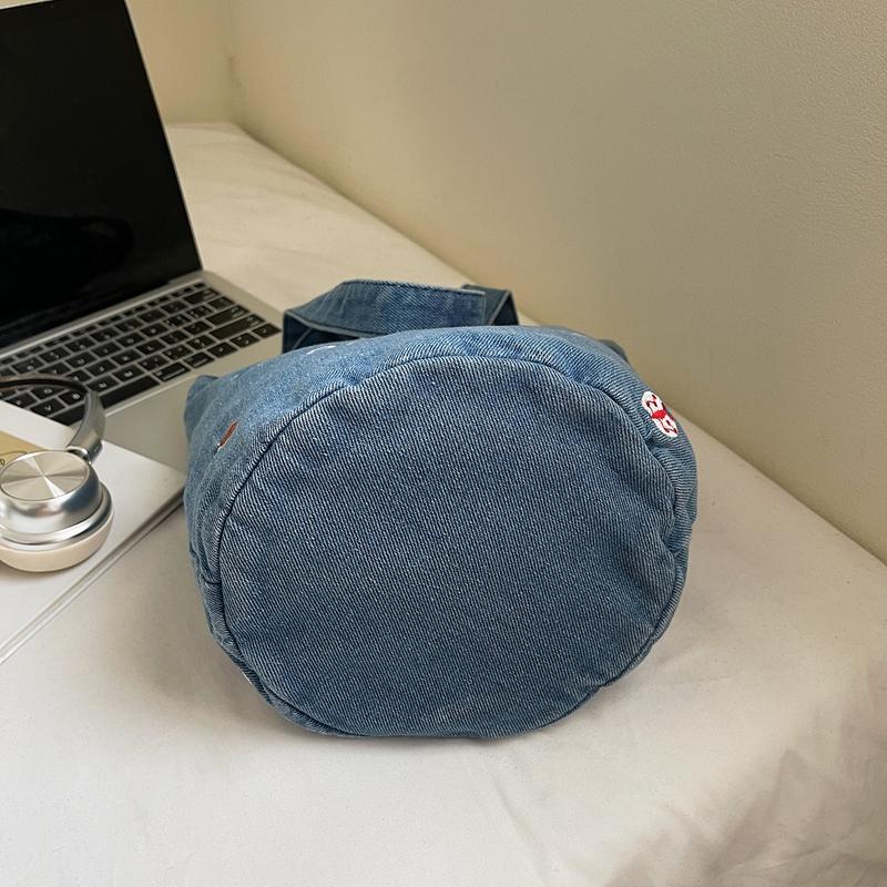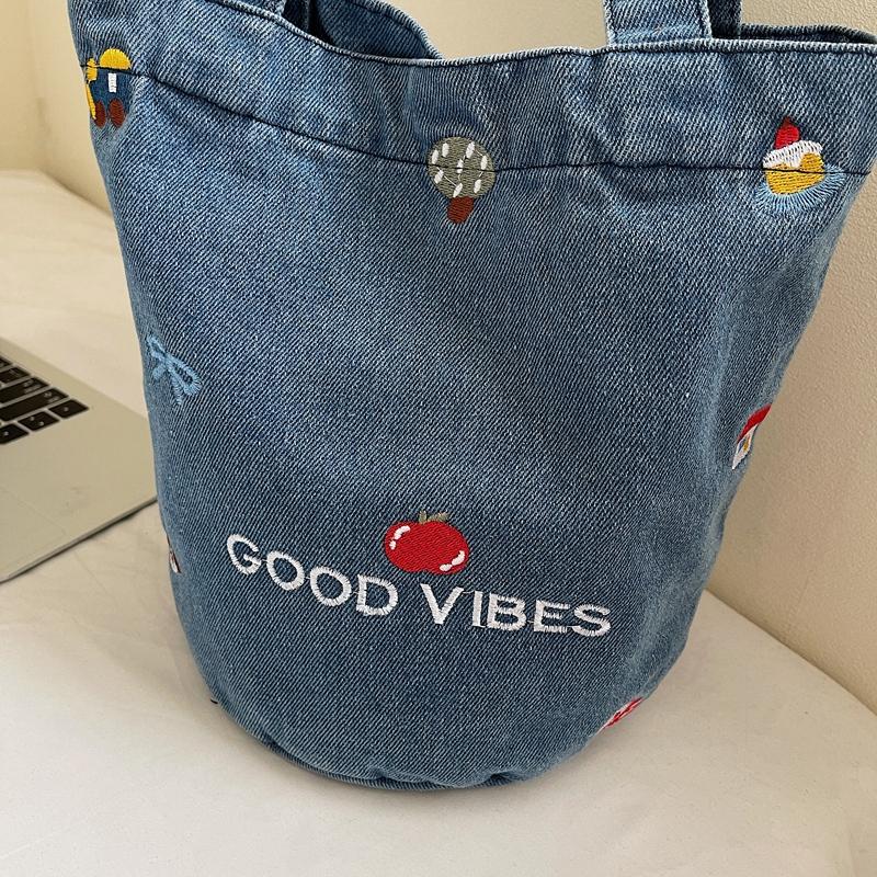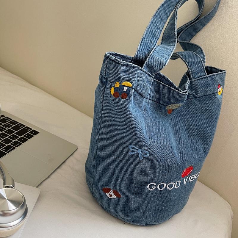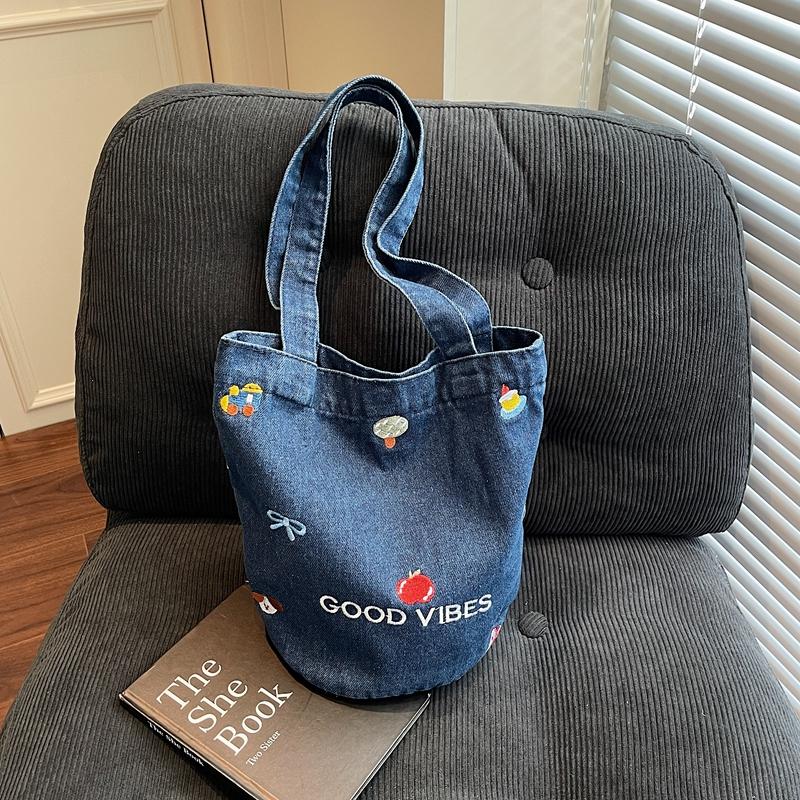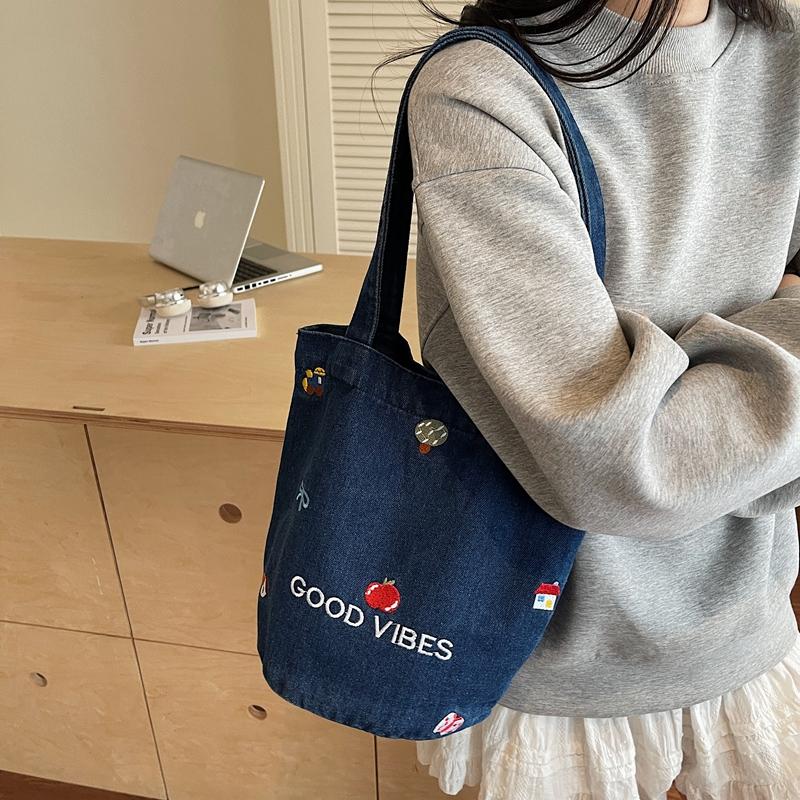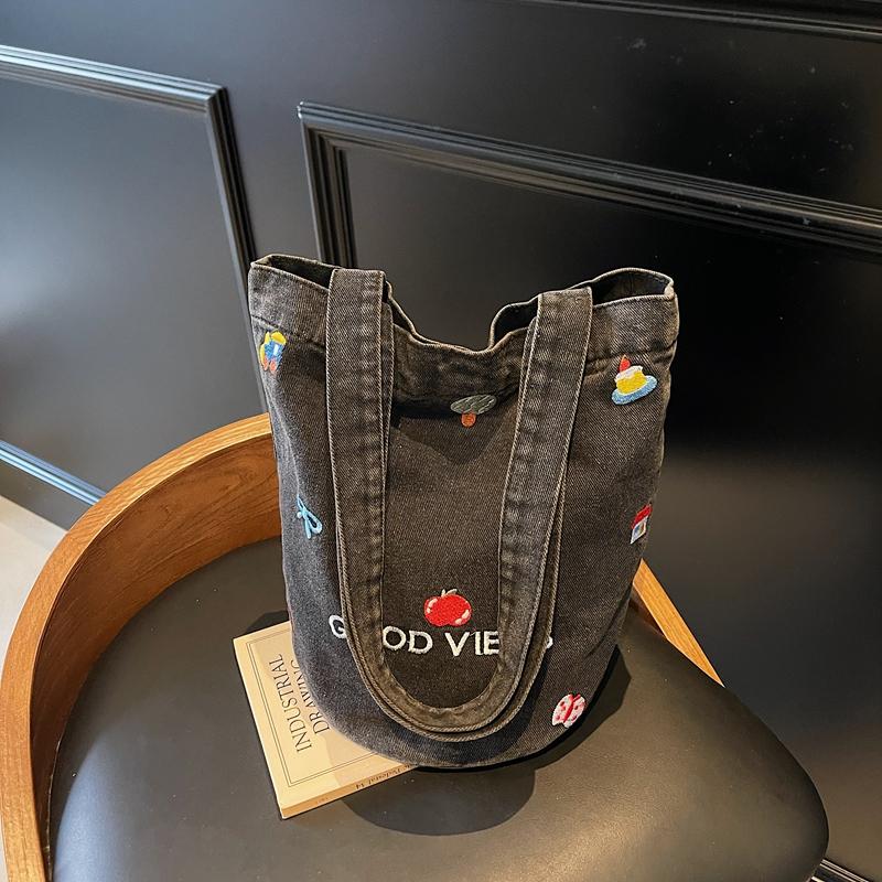Джинсовая сумка большой вместимости женская вышитая сумка-тоут на плечо