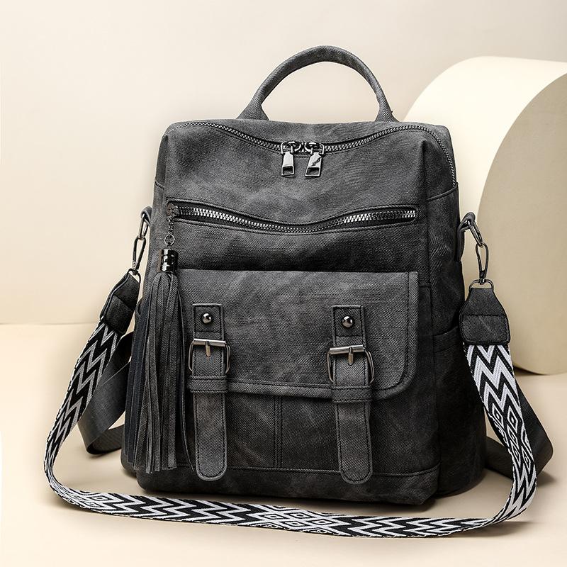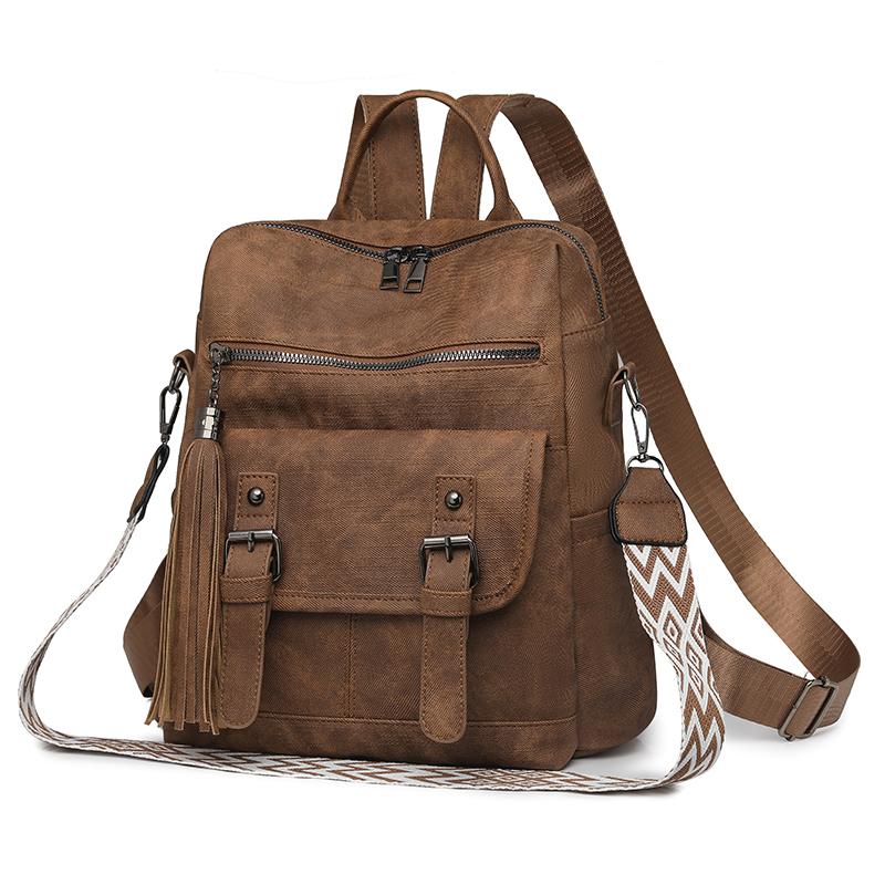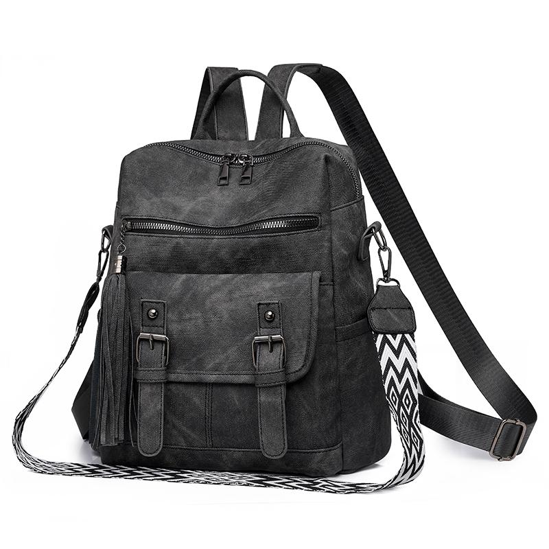PU Backpack With Tassel Detail And Adjustable Shoulder Strap