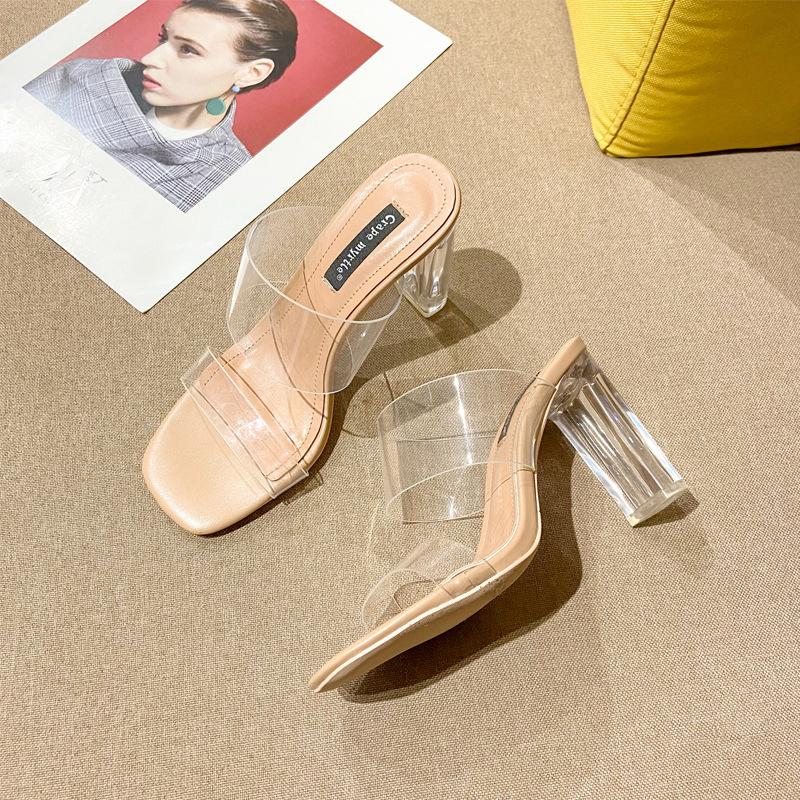 Прозрачные крутые тапочки женские 2025 лето новые сексуальные на высоком каблуке-шпильке с ремешком через подъем темпераментные нишевые туфли-тапочки на высоком каблуке