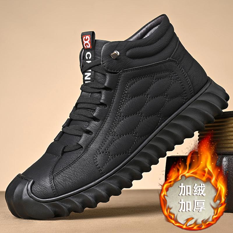 Мужские хлопковые туфли 2025 зима новые бархатные теплые утолщенные высокие кожаные туфли замшевые хлопковые непродуваемые Северо-восточные зимние сапоги