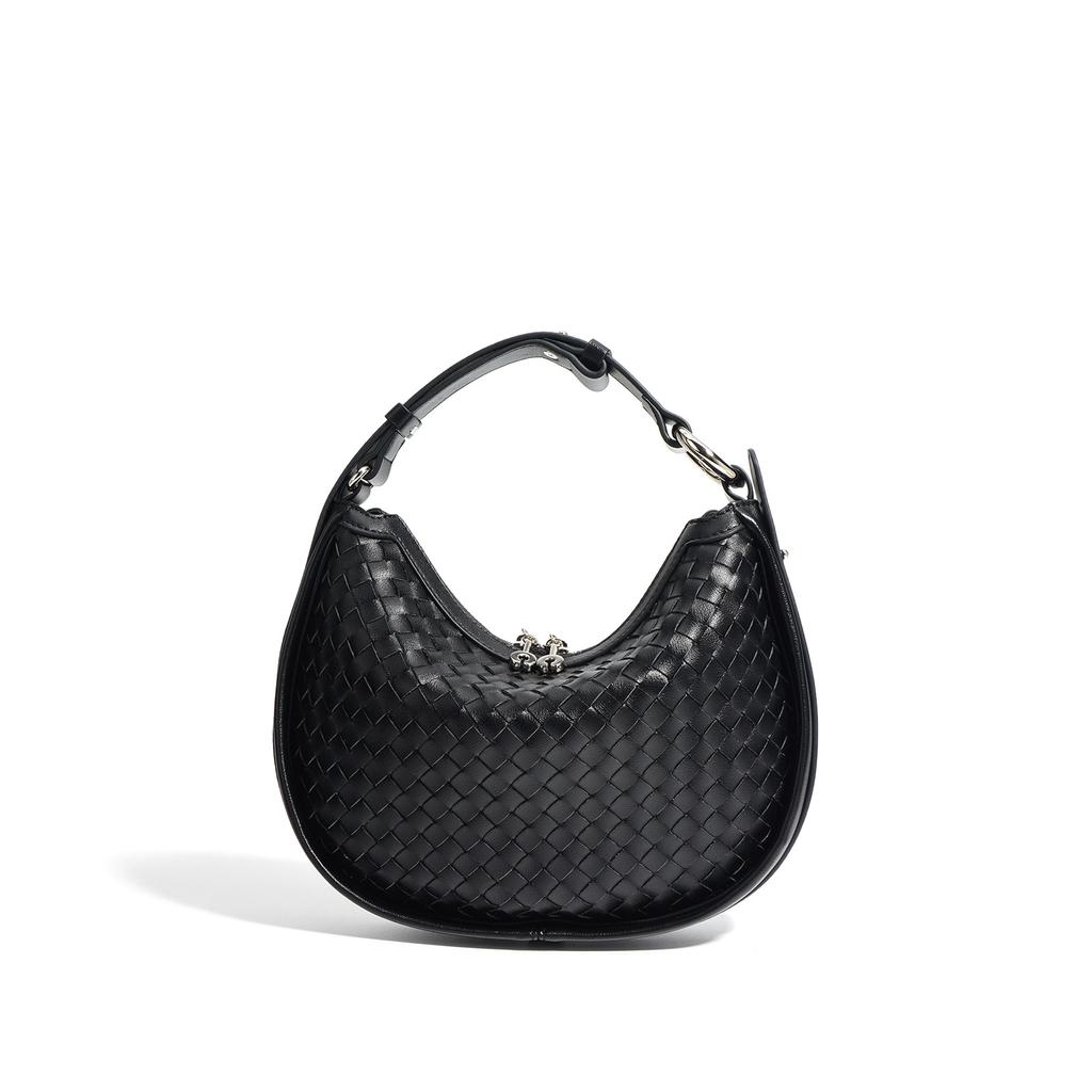 Новая плетеная сумка-полумесяц из коровьей кожи, модная повседневная кожаная сумка через плечо, кроссбоди, подмышку, нишевый дизайн, весна-лето 2025