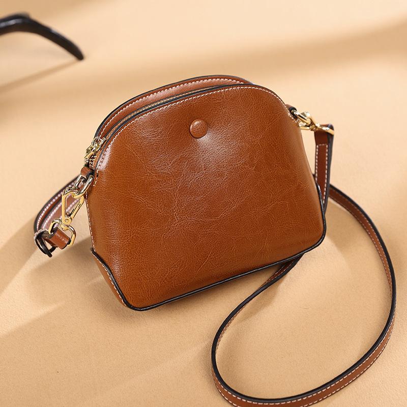 Новая летняя женская сумка из кожи с масляной восковой пропиткой, ретро, простая текстура, маленькая сумка-ракушка, большая вместимость, текстура, на одно плечо, через плечо