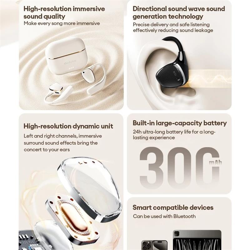 Lenovo LP78 OWS Беспроводные наушники Bluetooth 5.4 Стереозвук Долгое время работы от аккумулятора Гарнитура Шумоподавление Низкая задержка Спортивные Водонепроницаемые Наушники