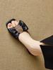 Летние шлепанцы на толстом каблуке с бантом, женская модная обувь со стразами, из мягкой кожи, с открытым носком, на высоком каблуке, крутые шлепанцы