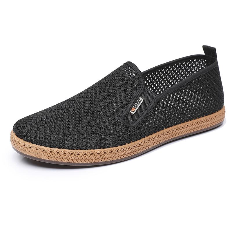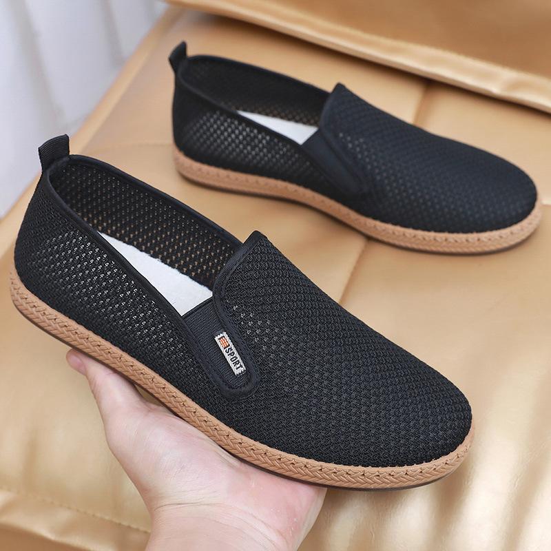 Старые пекинские тканевые туфли, полая сетка, мягкая подошва, дышащая повседневная обувь, на один педаль, нескользящие туфли для папы, нескользящие, износостойкие мужские туфли