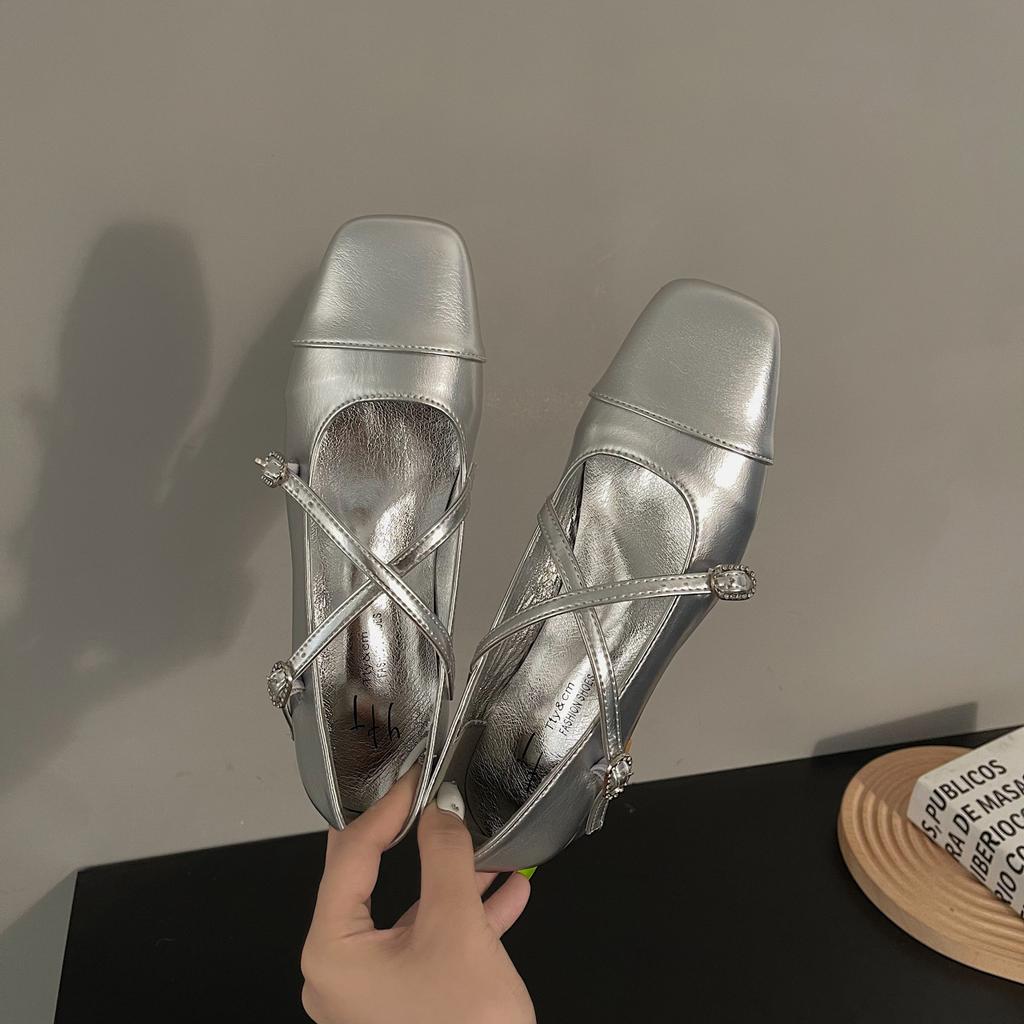 Mary Jane shoes small silver shoes spring 2025 new versatile light mouth soft leather cross single shoes small leather shoes
