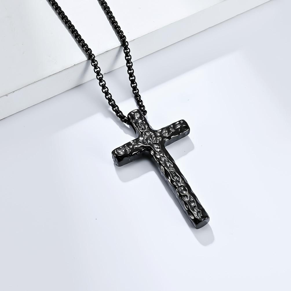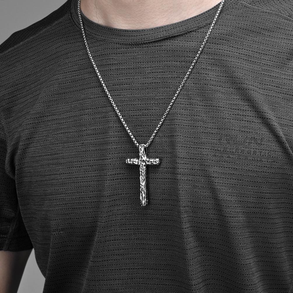 Винтажное состаренное ожерелье-крест из титановой стали с чеканным узором