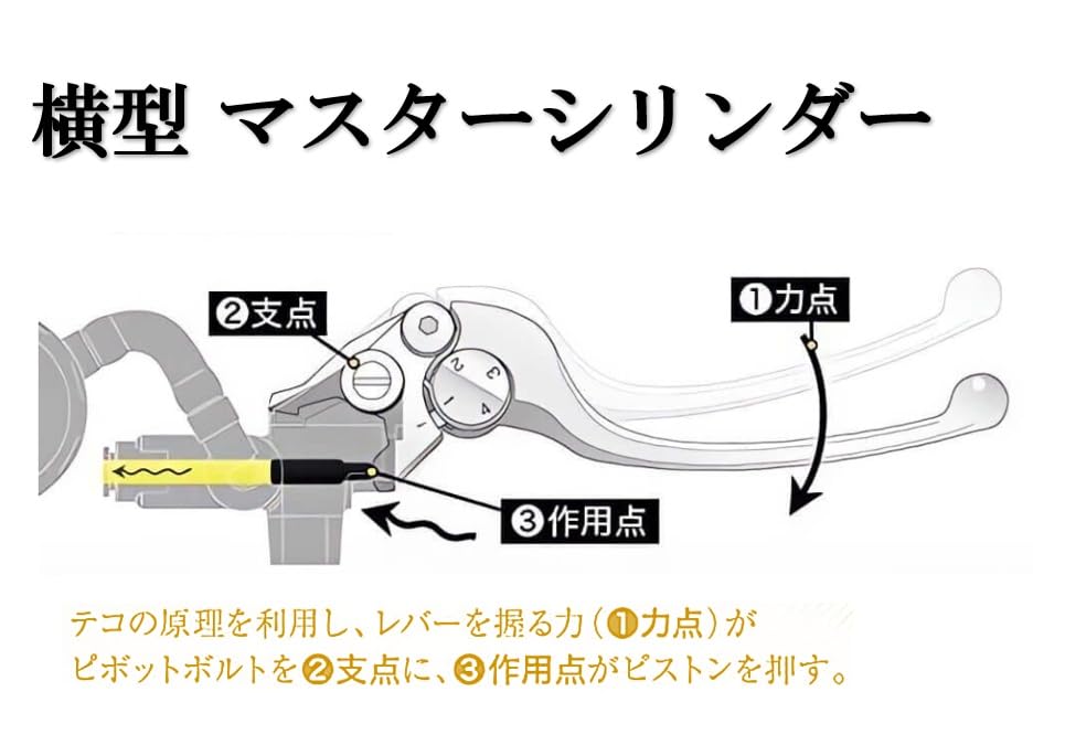 ・Существует два типа передних дисковых тормозов мотоцикла: двухдисковый и однодисковый, и этот главный цилиндр совместим как с однодисковым, так и с двухдисковым. ・Это горизонтальный главный цилиндр большой емкости, который можно использовать как для одинарного, так и для двойного диска.