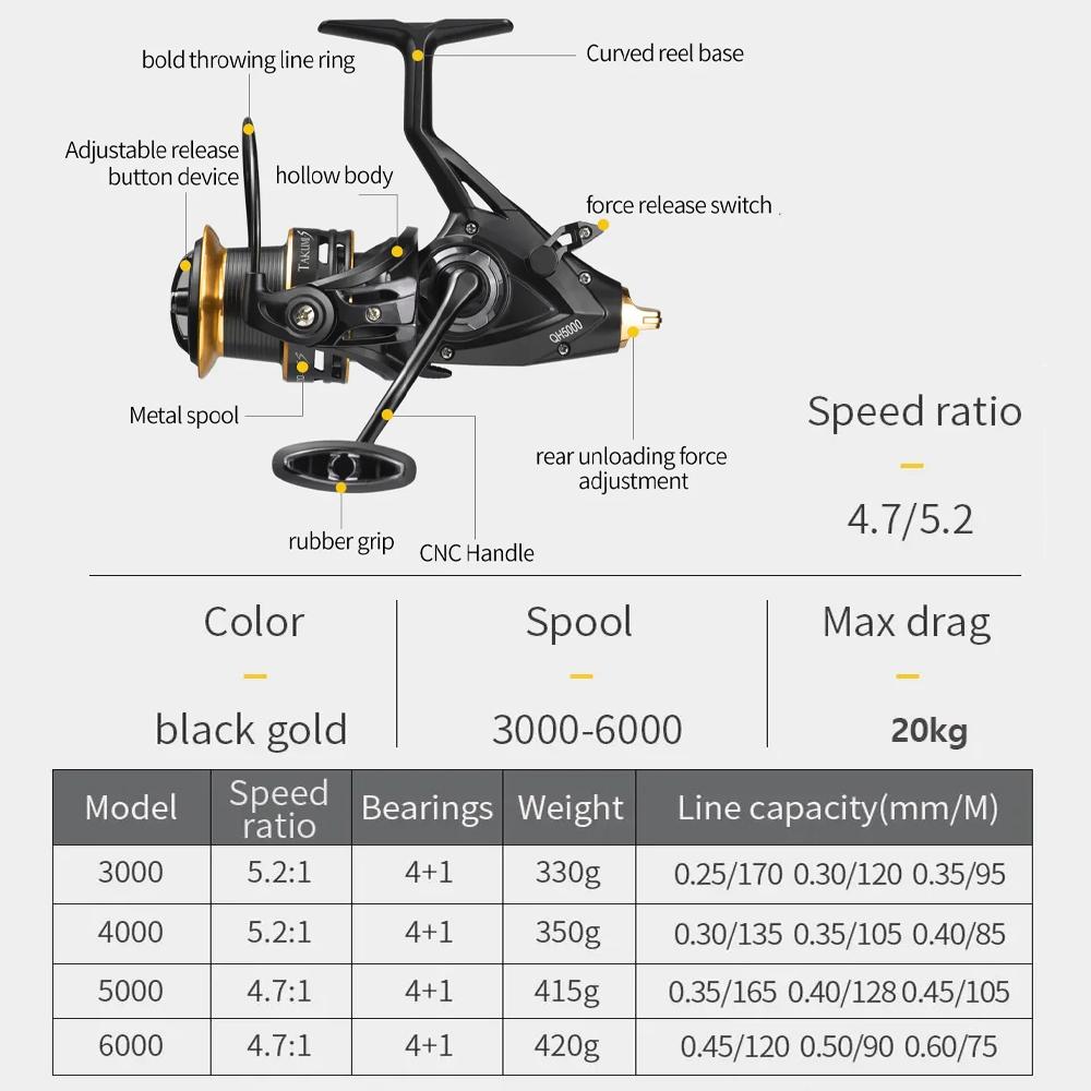 Новая катушка для дальнего заброса, катушка для ловли карпа, катушка для ловли карпа, 3000-6000, сильная двухфрикционная катушка для ловли карпа, 13-20 кг — купить товар онлайн с бесплатной доставкой по всему миру!