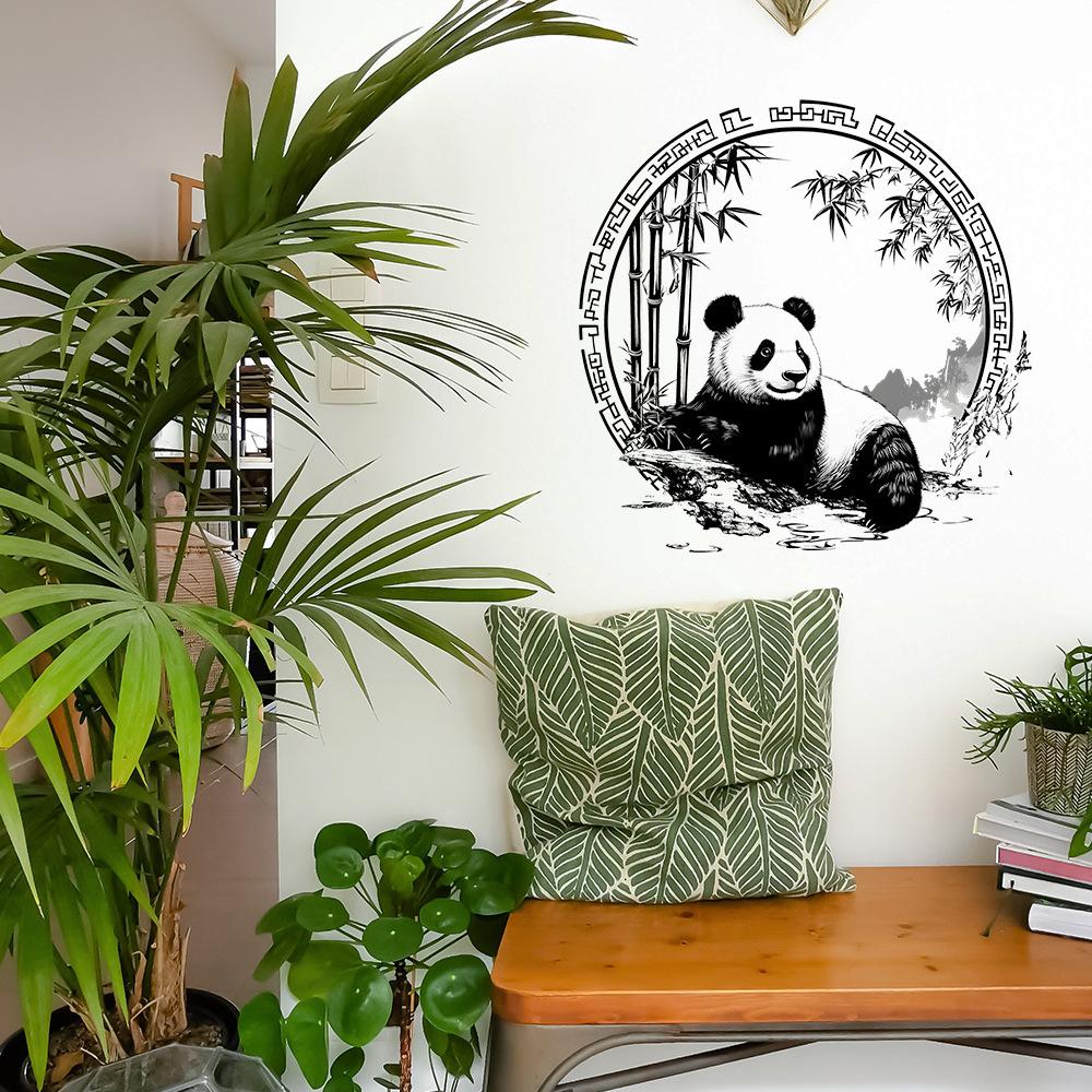 Простые наклейки на стену в китайском стиле, маленькая панда, бамбук, для украшения спальни, гостиной
