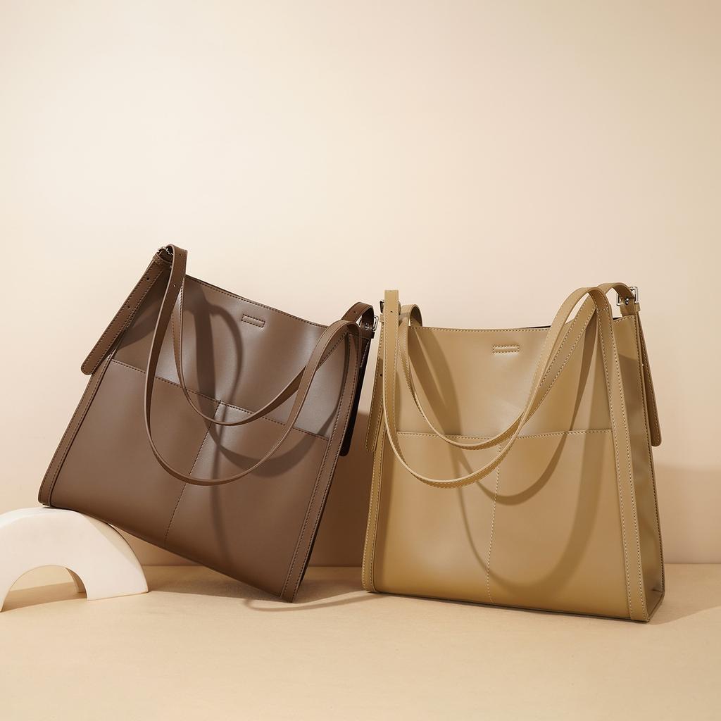 Новая женская сумка-тоут из коровьей кожи большой вместимости, простая, для работы, универсальная на плечо, нишевый дизайн, кожаная сумочка