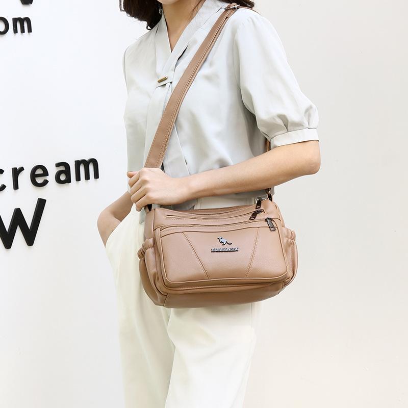 Женская сумка из мягкой кожи простая и универсальная 2025 весна новая сумка для матери среднего возраста большая вместимость многослойная на плечо сумка-мессенджер женская