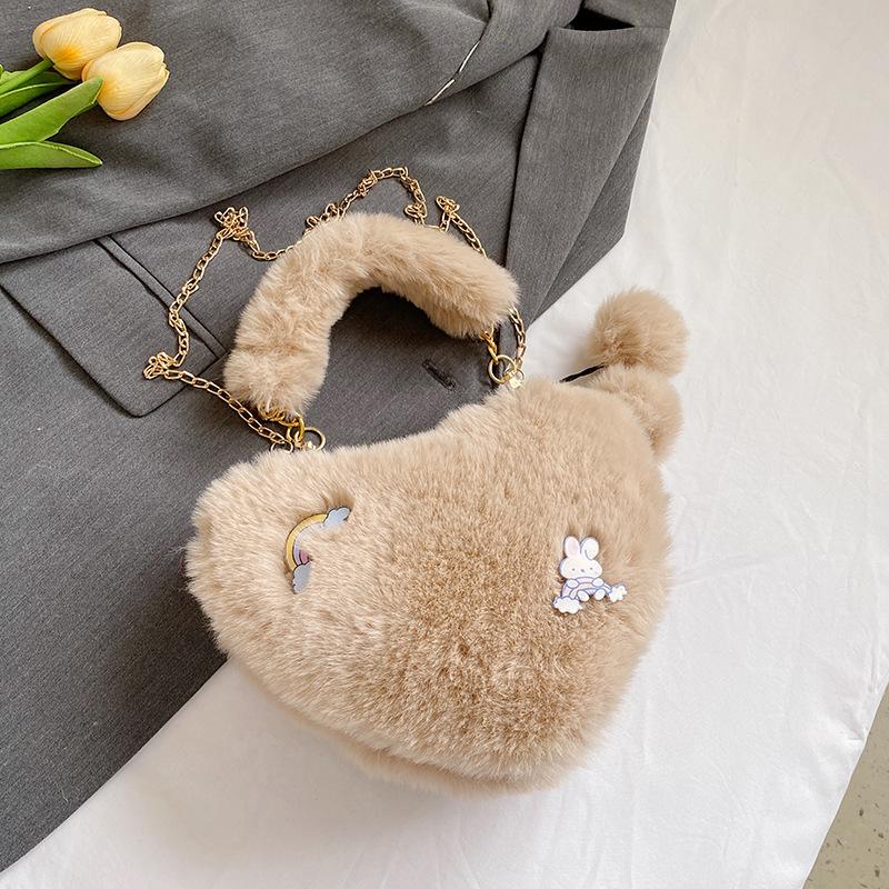 2025 осень и зима новая маленькая сумка модная универсальная сумка из любви к шерсти плюшевая на плечо сумка-мессенджер