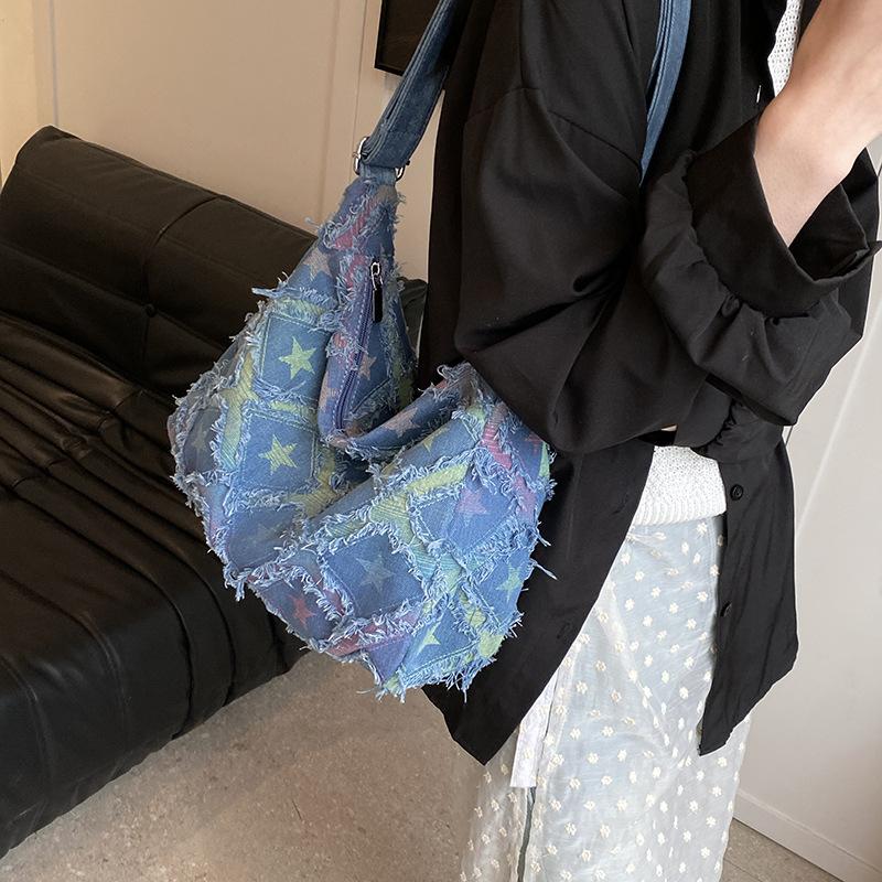 Джинсовая сумка женская большой вместимости 2025 весна новая универсальная на плечо сумка-мессенджер премиальная дорожная сумка-тоут
