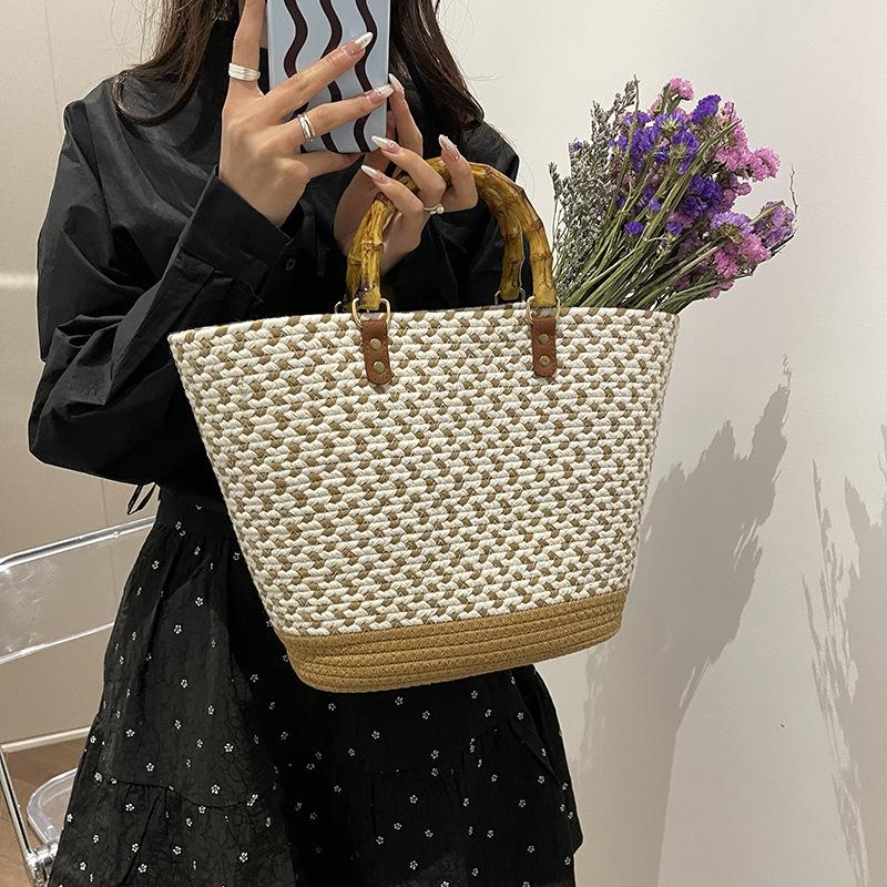 Модная текстурная простая женская сумка большой вместимости, новая коллекция весна 2025, плетеная универсальная сумка-ведро, тренд