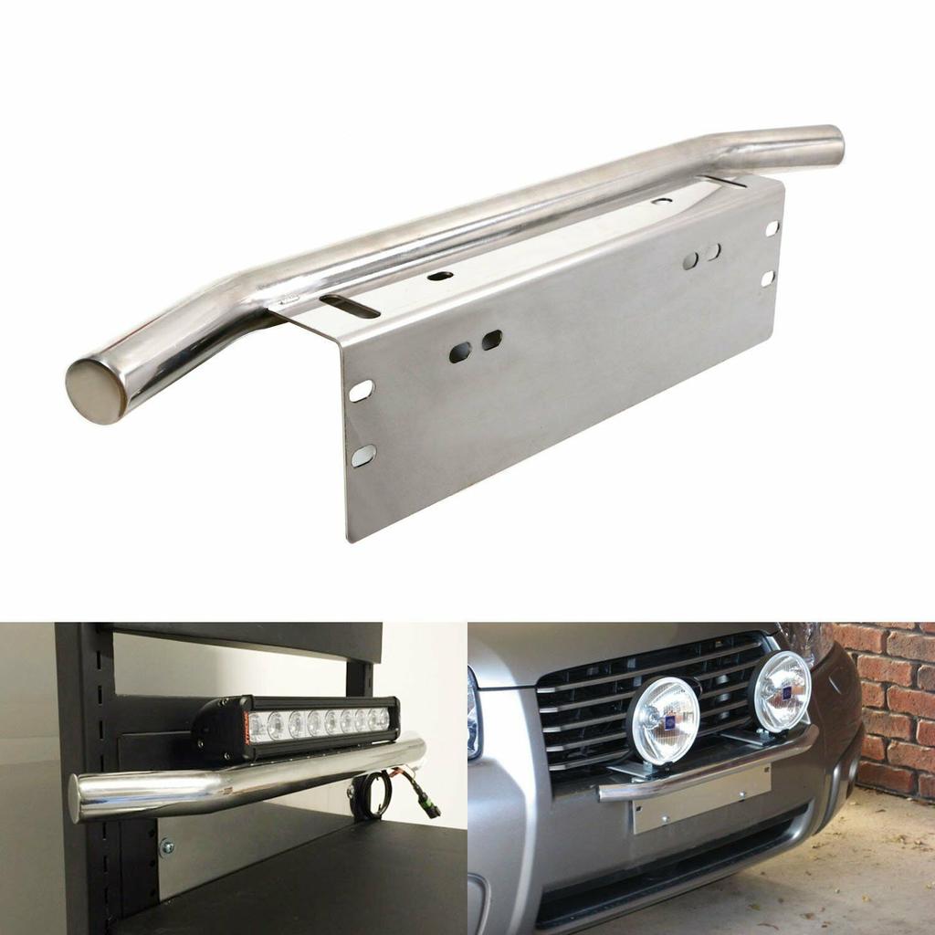 23" Автомобильный Передний Бампер Кронштейн Держатель Номерного Знака Дуга Безопасности Крепление Светодиодная Лампа Внедорожный Серебристый Хром Универсальный