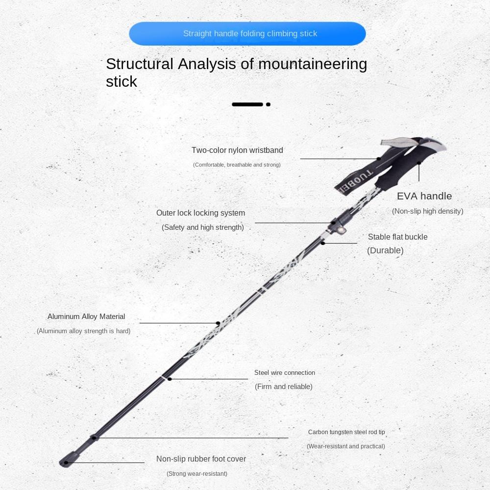 Folding Camping Walking Hiking Stick 5 Section Telescopic Climbing Poles Trail Running