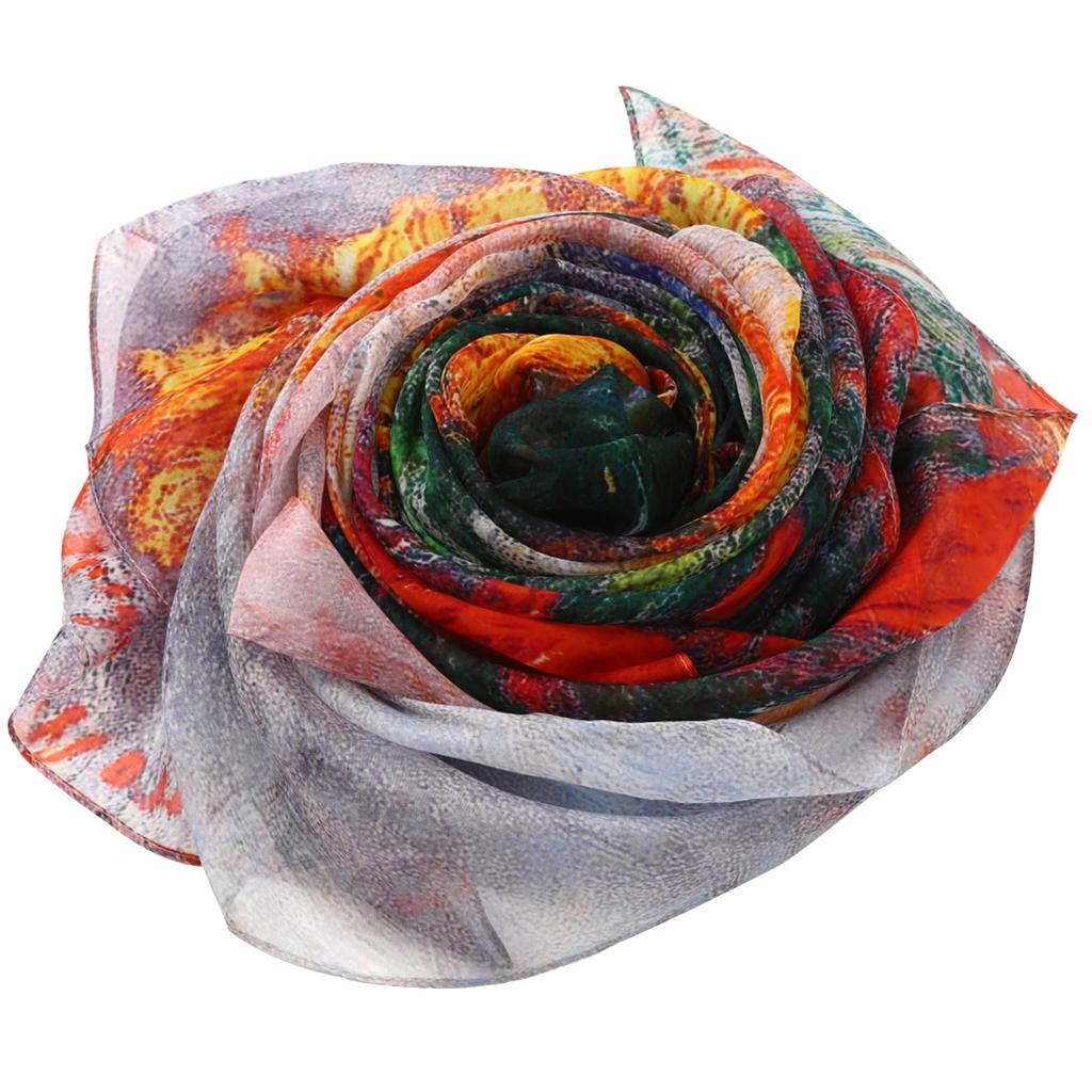 Материал: 100% шифоновый шелк Размер: Приблизительно 175см х 135см Этот большой шарф - замечательный предмет для наслаждения модой. Оберните его вокруг себя для защиты от УФ-лучей, а когда прохладно, его можно быстро надеть.. В зависимости от того, как вы его обернете, можно ожидать, что он сделает ваше лицо визуально меньше, а ваши ноги - длиннее.. Его можно носить не только как шарф, но и как ремень, как украшение для сумки или как гобелен для украшения комнаты.. Это очаровательный предмет, который можно трансформировать. Рекомендуется в качестве подарка для близких, таких как 60-летие, 77-летие, празднование долголетия, подарок, Рождество, день рождения, годовщина, презент, шарф, шаль, День матери, День пожилых людей и т. д.