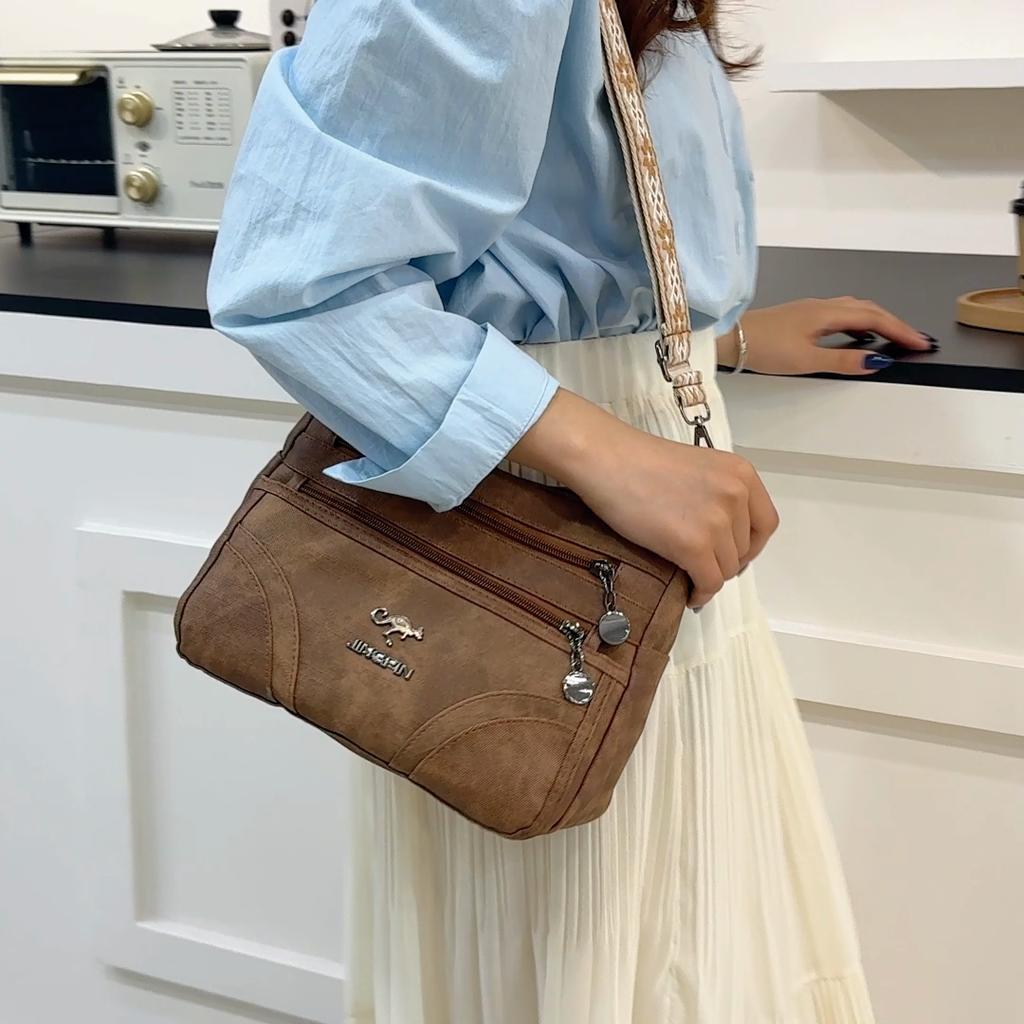 Женская сумка через плечо большой вместимости из мягкой кожи, сумка кроссбоди, сумка для мамы, маленькая квадратная сумка для среднего возраста