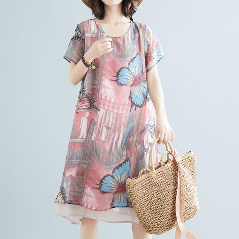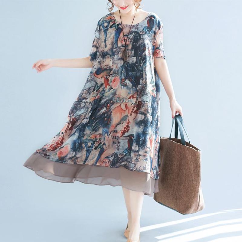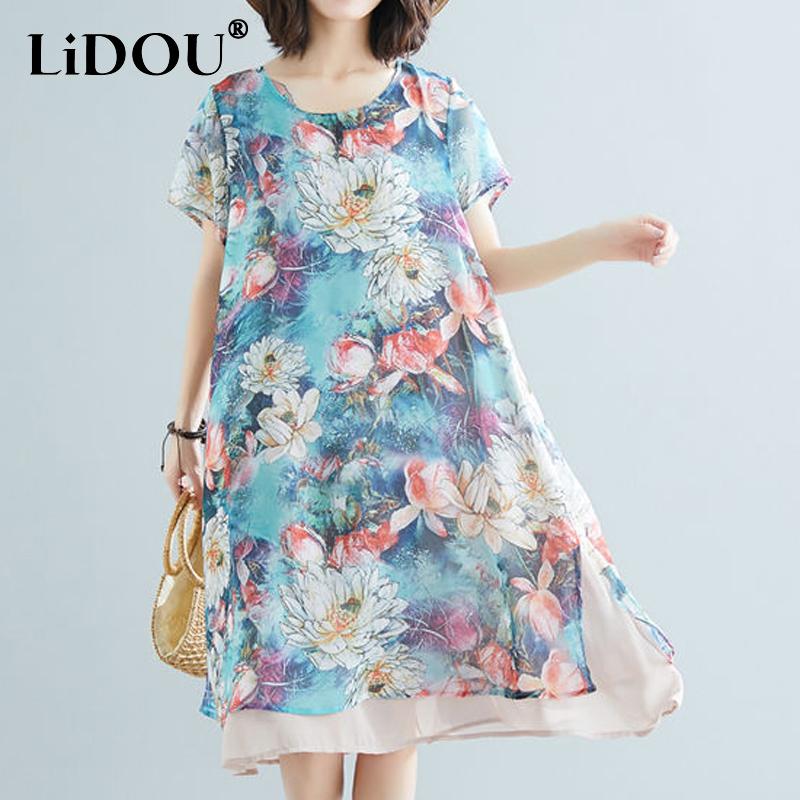 Летние Новые Платья с Круглым Вырезом, Винтажные Элегантные с Цветочным Принтом, Повседневные, Женские, Свободные, Повседневные, Удобные, А-силуэта, Шифоновые Платья