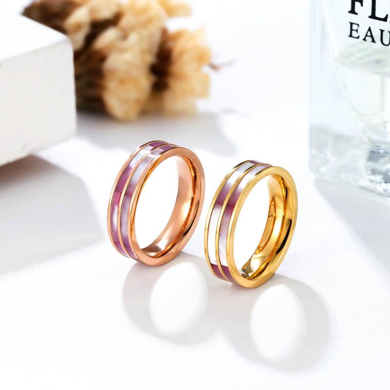 Легкая роскошь Двухслойное кольцо с перламутром Нишевое Простое кольцо Женское Титановая сталь Высокая стойкость цвета Ювелирные изделия