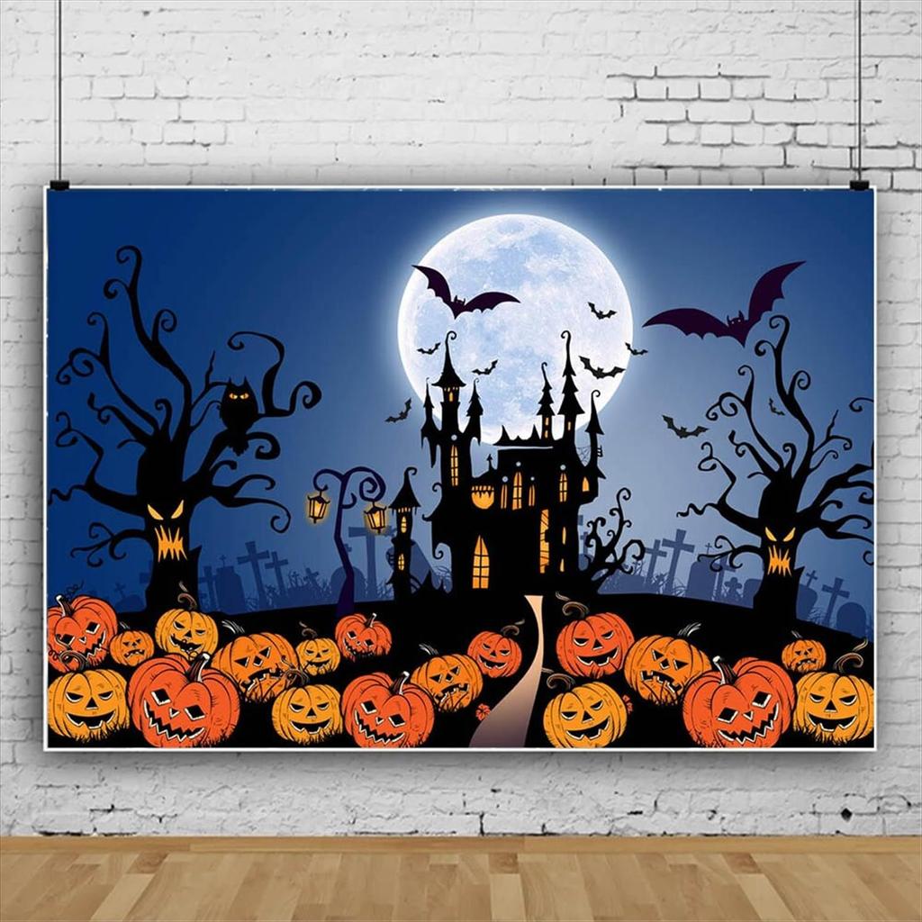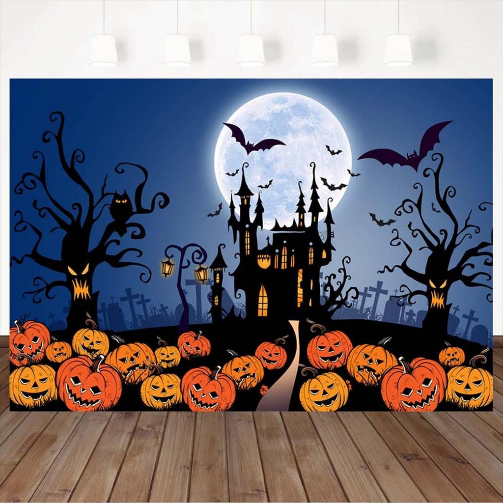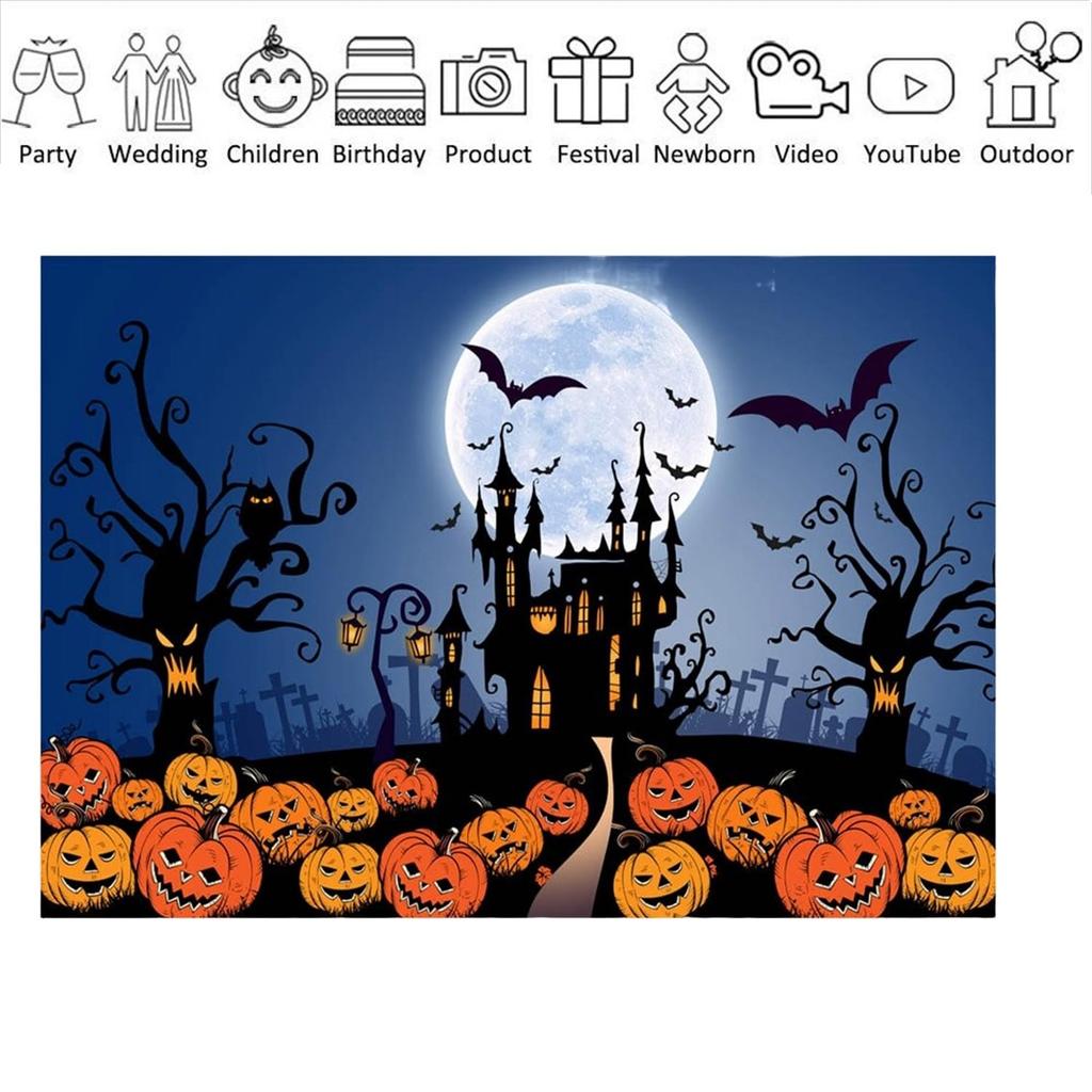 Фоновая бумага Хэллоуин Ночь Замок Тыква Летучая мышь Студийная фотосессия Декорация Мероприятие Вечеринка Ужасы Винил 220x150см [34501-34516]