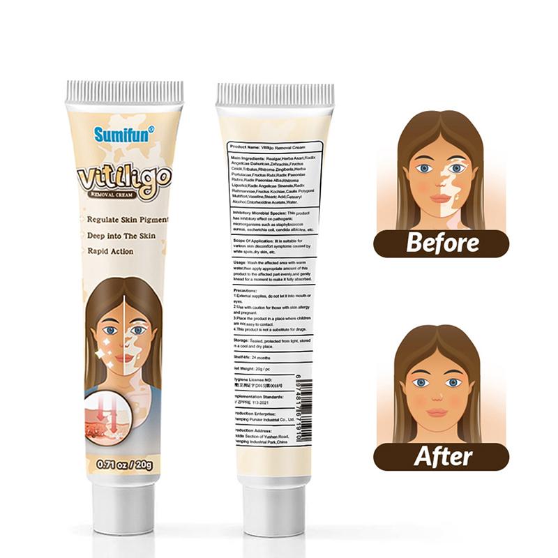 Лечебный увлажняющий крем эффективно снимает нарушения пигментации кожи, включая витилиго, лейкоплакию, обесцвечивание кожи и другие гиперпигментированные проблемы кожи по всему телу.
