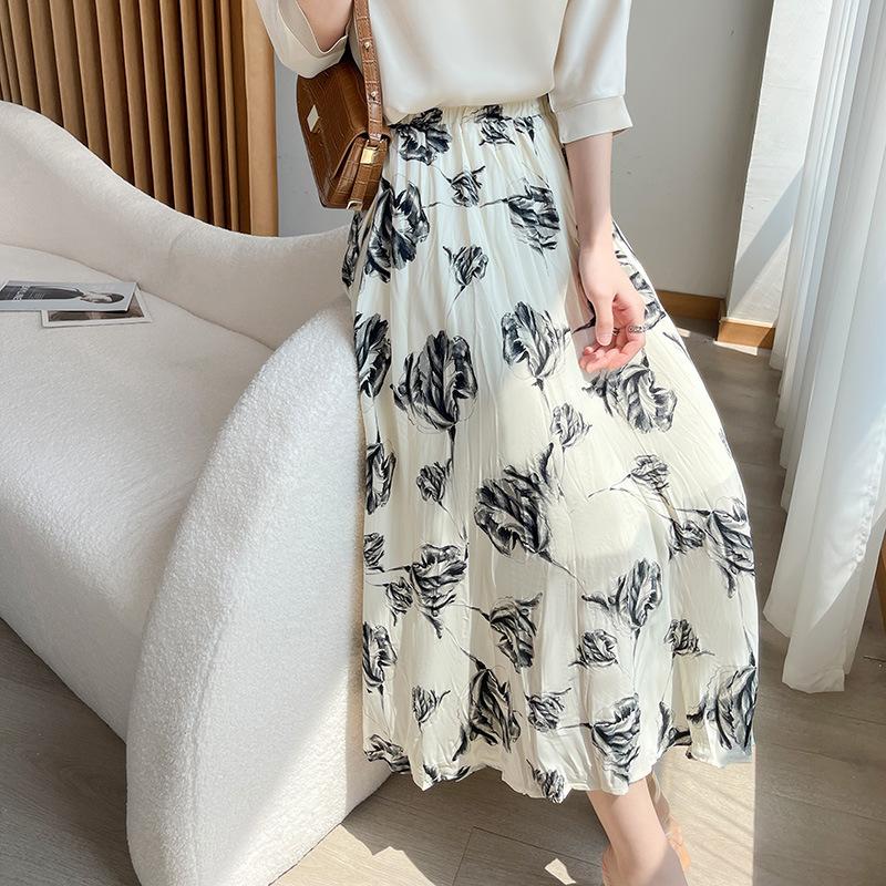 Юбка Сатин Роза Летний Новый Стиль Свободная Скрывающая Бедра Большая Длинная Юбка Высокая Талия А-силуэт — купить товар онлайн с бесплатной доставкой по всему миру!