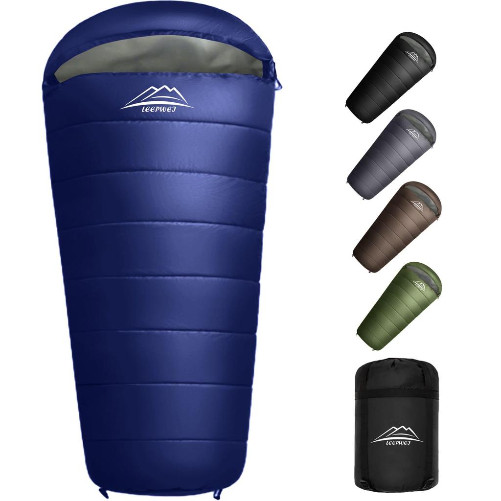 Спальный мешок, мумия, LEEPWEI, для кемпинга, на открытом воздухе, легкий, теплый, холодостойкий, водонепроницаемый, в стиле конверта, компактный, для альпинизма, сна в машине, для предотвращения стихийных бедствий, полностью стираемый, все сезоны, сумка для хранения в комплекте, темно-синий, 1 кг