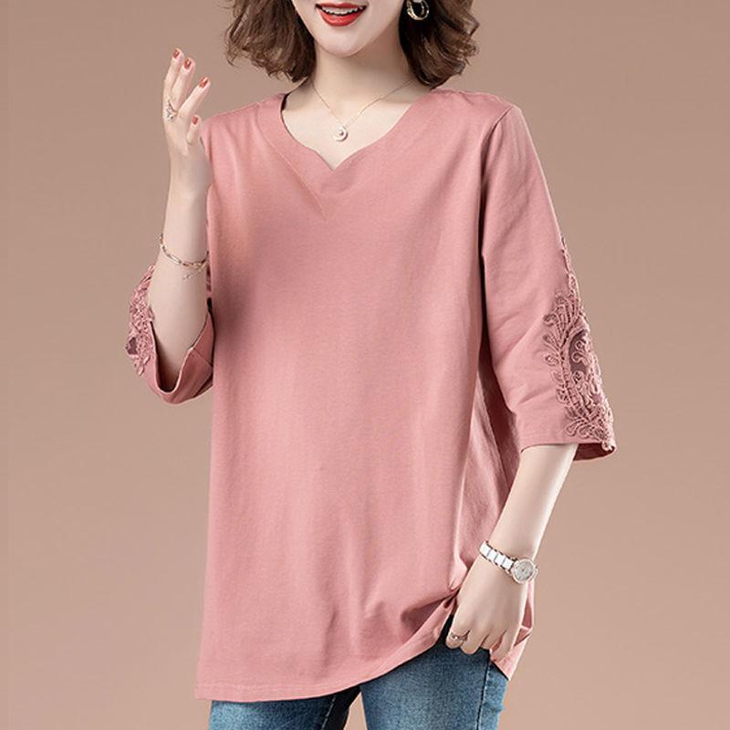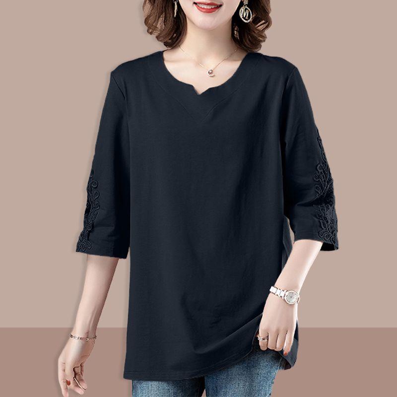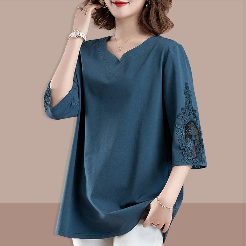Летняя женская футболка больших размеров, свободная, рукав три четверти, рубашка VT, однотонный топ