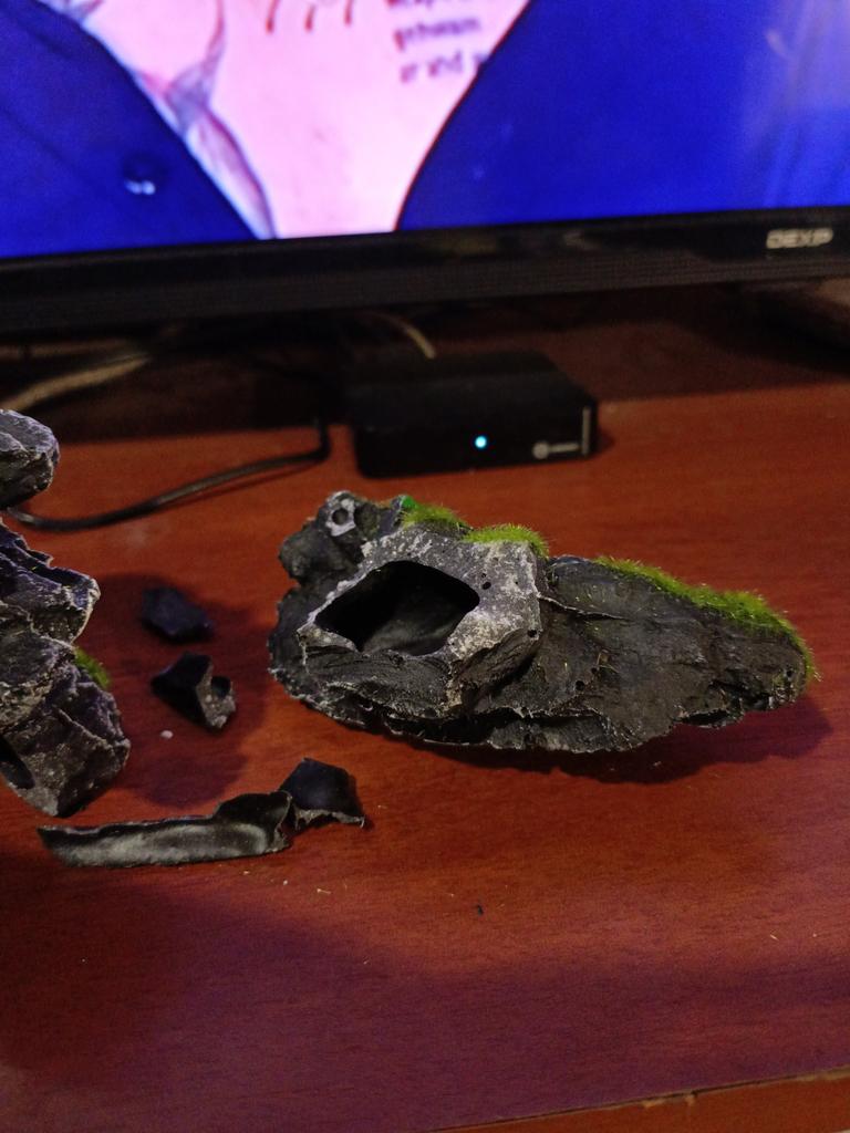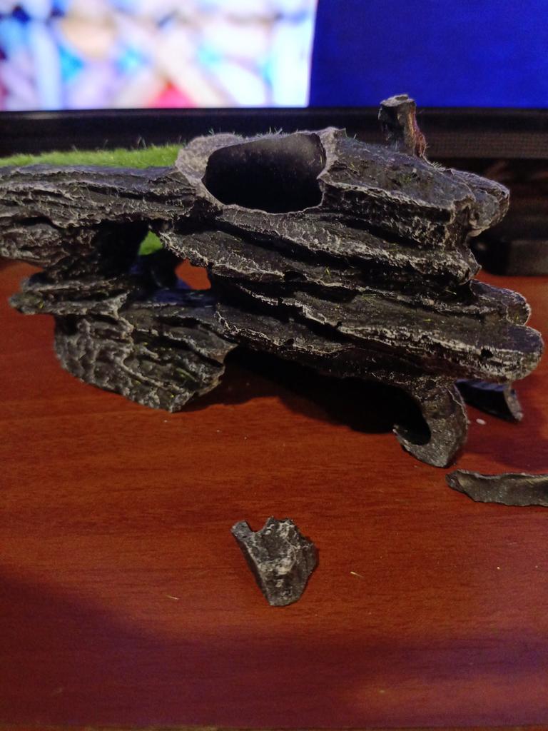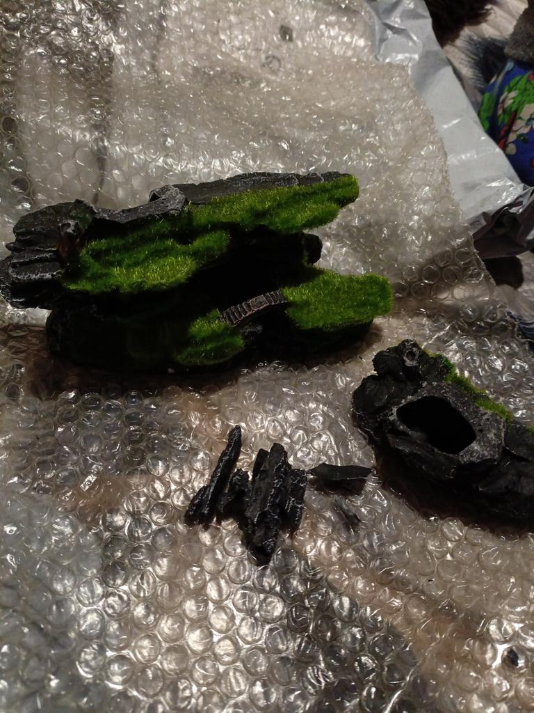 Заказ шёл 3 недели на почту. Смотрется отлично даже в большом аквариуме. Пластик без запаха, легкий надо утяжелять, внутри есть замочик для камушка, продавца рекомендую.