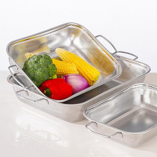 Представляем нашу корзину для слива — универсальный и незаменимый предмет на кухне, призванный сделать процесс приготовления пищи более эффективным.. Выступающее основание этого металлического фильтра обеспечивает очистку столешницы, не допуская попадания воды на пищу и поверхности, а также сухость.. Благодаря прочной ручке, обеспечивающей надежный захват, сливать пасту и другие ингредиенты становится легко.