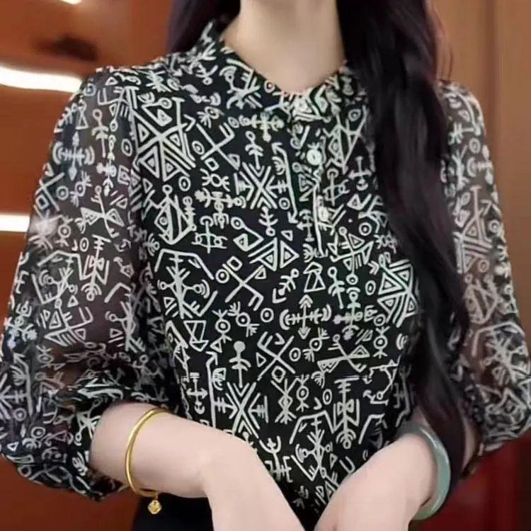 Стильная летняя женская рубашка тонкая свободного кроя повседневная скрывает живот блузка с рукавами семь восьмых большого размера модная — купить товар онлайн с бесплатной доставкой по всему миру!