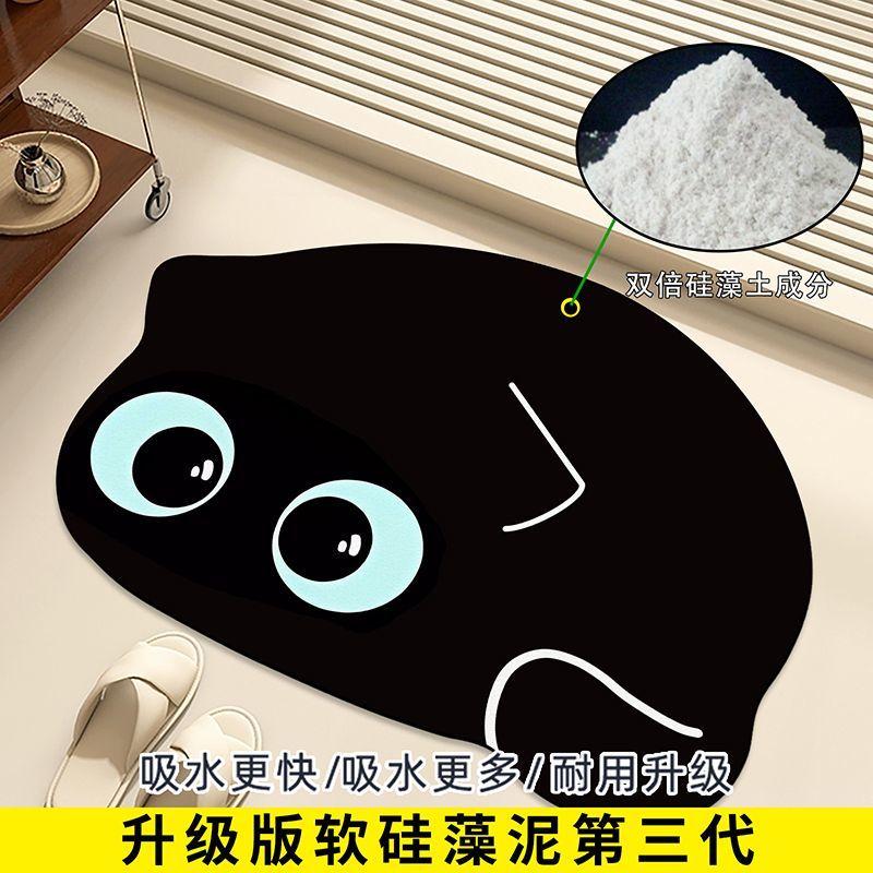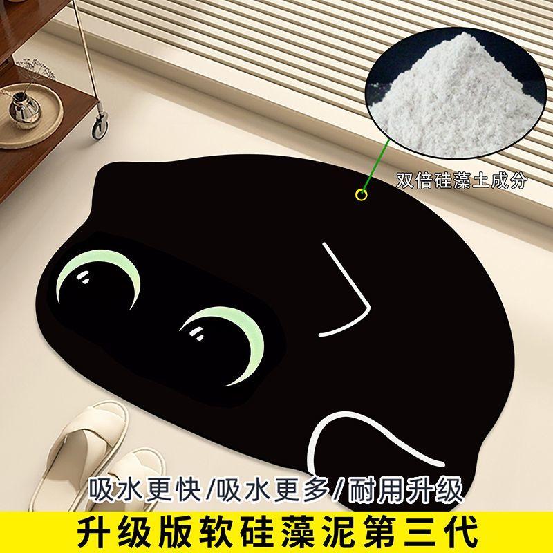 Впитывающий коврик для ванной с котенком, нескользящий коврик для ног из диатомовой грязи, для кухни, туалета, двери ванной комнаты, быстросохнущий