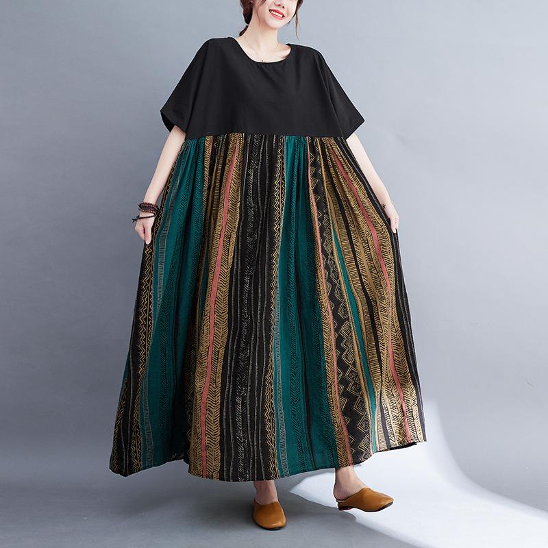 Реальное фото летнее новое литературное большого размера свободное платье с принтом круглым вырезом и коротким рукавом женское длинное платье — купить товар онлайн с бесплатной доставкой по всему миру!