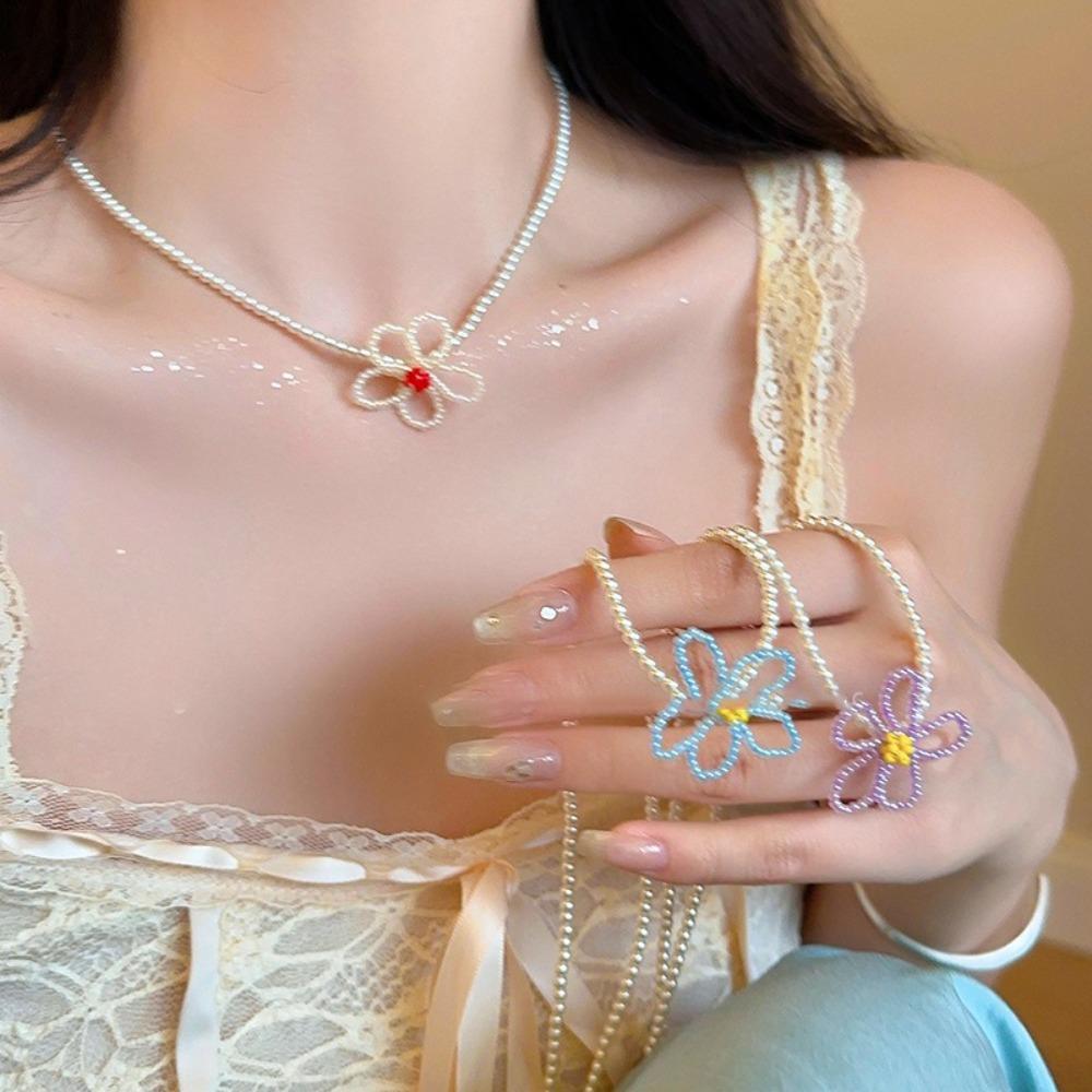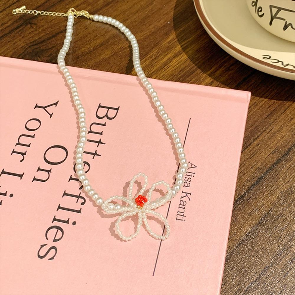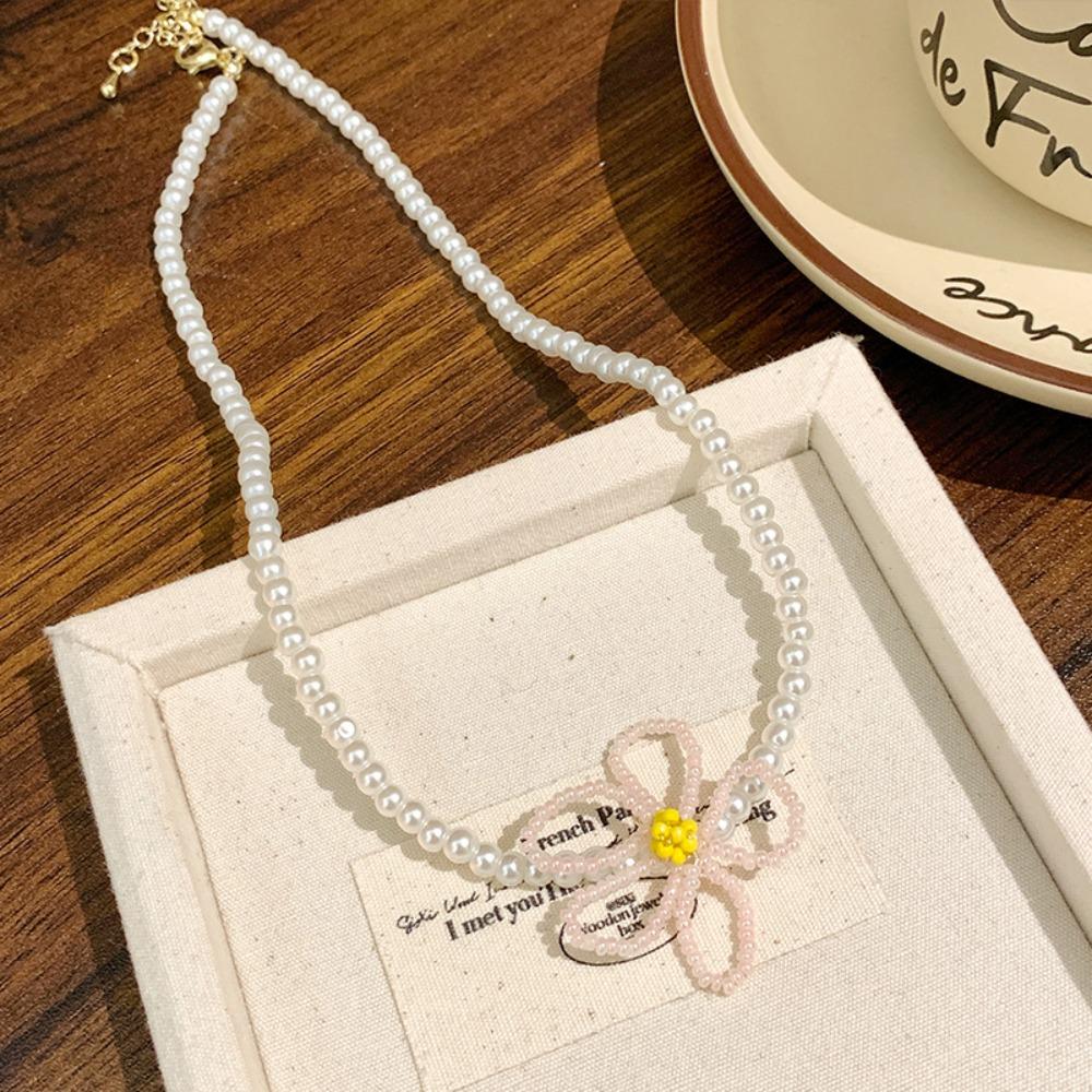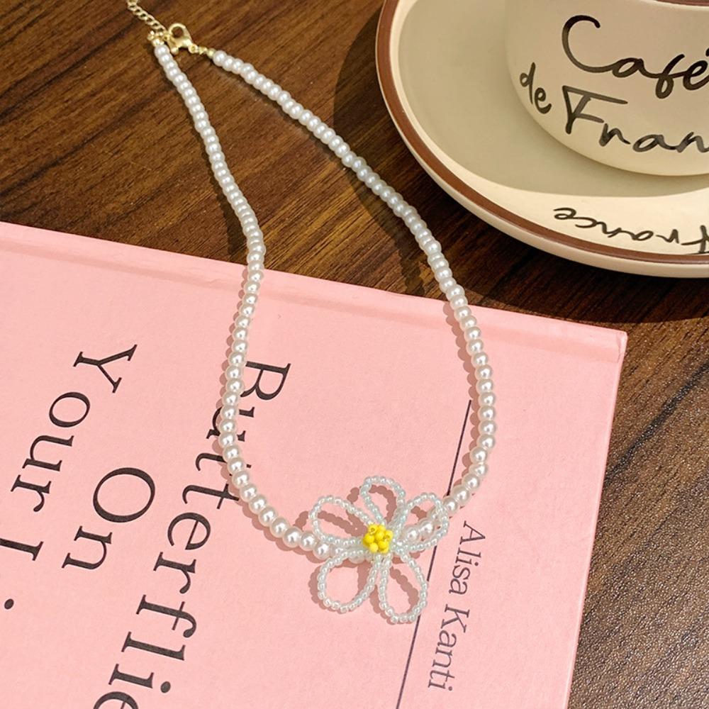Colorful Flower Necklace Handmade Beads Choker Sweet Imitation Pearl Necklace Seaside
